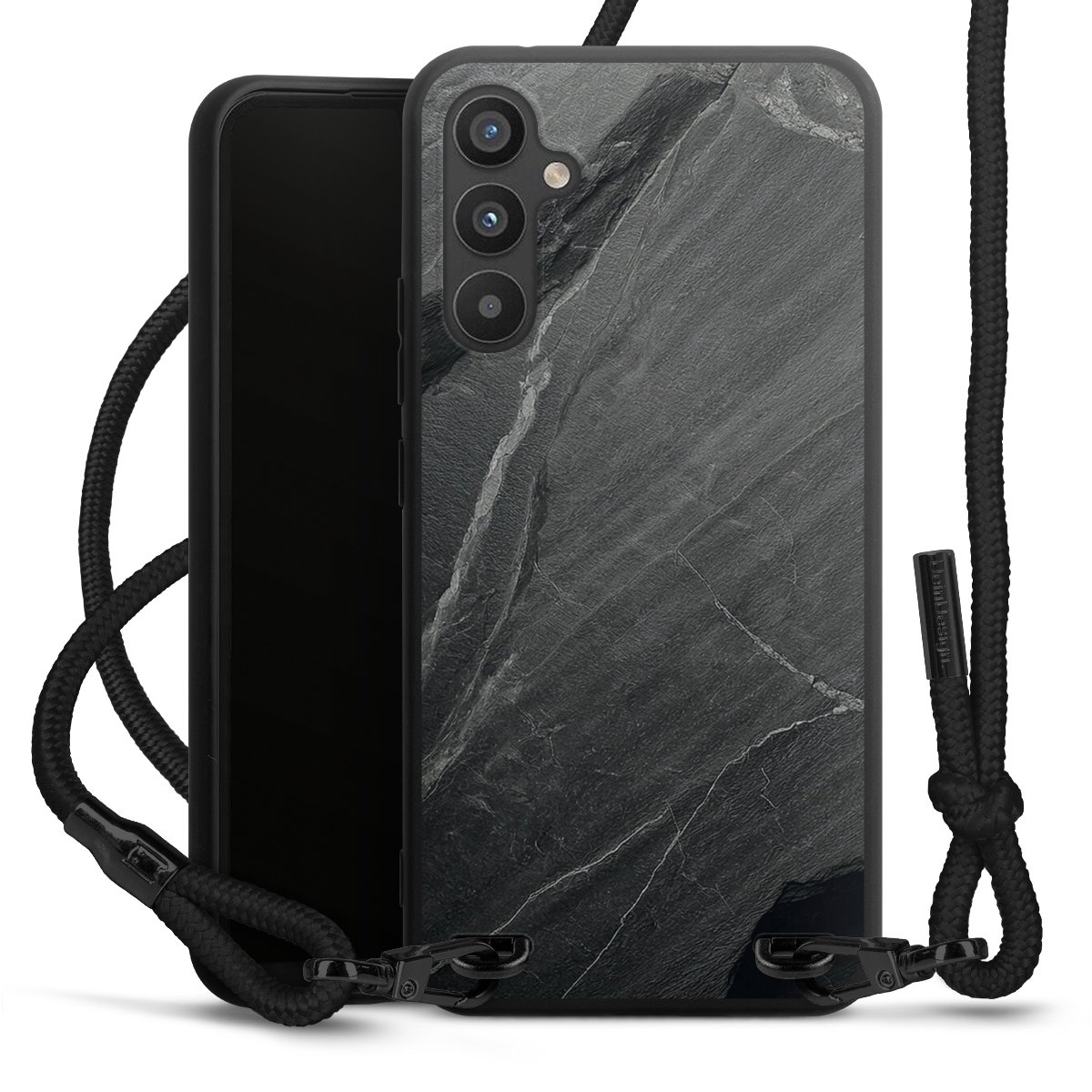 Pure Black: Phone case, fabric strap and metal details in stylish matt black.