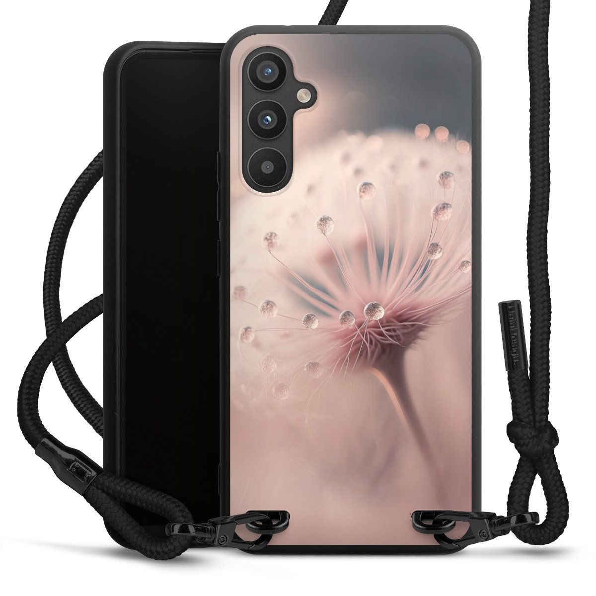 The matt black silicone case is made of flexible TPU (thermoplastic polyurethane) and offers robust protection. The durable, unbreakable material makes the cover flexible and dimensionally stable at the same time. The matte surface makes your design stand out more and is less susceptible to fingerprints and dirt. The stylish trend accessory fits comfortably in the hand and is perfectly complemented by the fabric (polyester) mobile phone strap. The braided fabric strap is approx. 1.70 metres long with a diameter of approx. 0.5 cm. Due to the special knotting technique, the length of the strap can be adjusted by simply pulling it, so that you can adapt it individually to your wishes. The practical case to wear around your neck is available with the fabric strap in black. As a little icing on the cake, we have provided the strap with a chic metal fastener in matt black. The strap is securely fastened to the case with loops made of high-quality genuine leather and press studs. The ends of the fabric strap are covered with metallic end caps and thus protected from fraying.