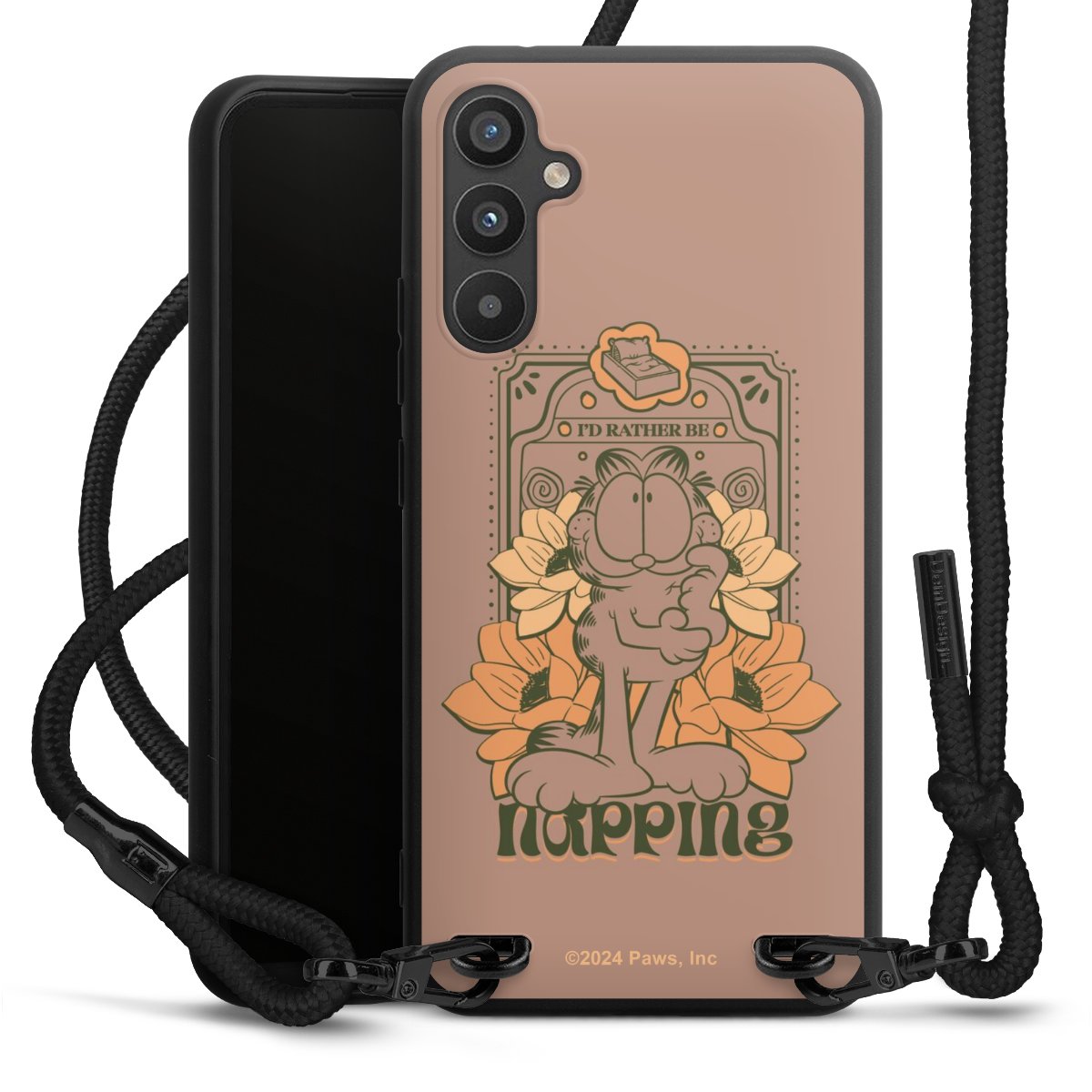 The matt black silicone case is made of flexible TPU (thermoplastic polyurethane) and offers robust protection. The durable, unbreakable material makes the cover flexible and dimensionally stable at the same time. The matte surface makes your design stand out more and is less susceptible to fingerprints and dirt. The stylish trend accessory fits comfortably in the hand and is perfectly complemented by the fabric (polyester) mobile phone strap. The braided fabric strap is approx. 1.70 metres long with a diameter of approx. 0.5 cm. Due to the special knotting technique, the length of the strap can be adjusted by simply pulling it, so that you can adapt it individually to your wishes. The practical case to wear around your neck is available with the fabric strap in black. As a little icing on the cake, we have provided the strap with a chic metal fastener in matt black. The strap is securely fastened to the case with loops made of high-quality genuine leather and press studs. The ends of the fabric strap are covered with metallic end caps and thus protected from fraying.