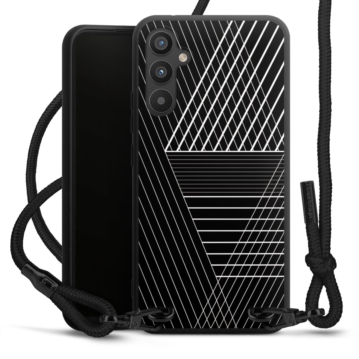 Pure Black: Phone case, fabric strap and metal details in stylish matt black.
