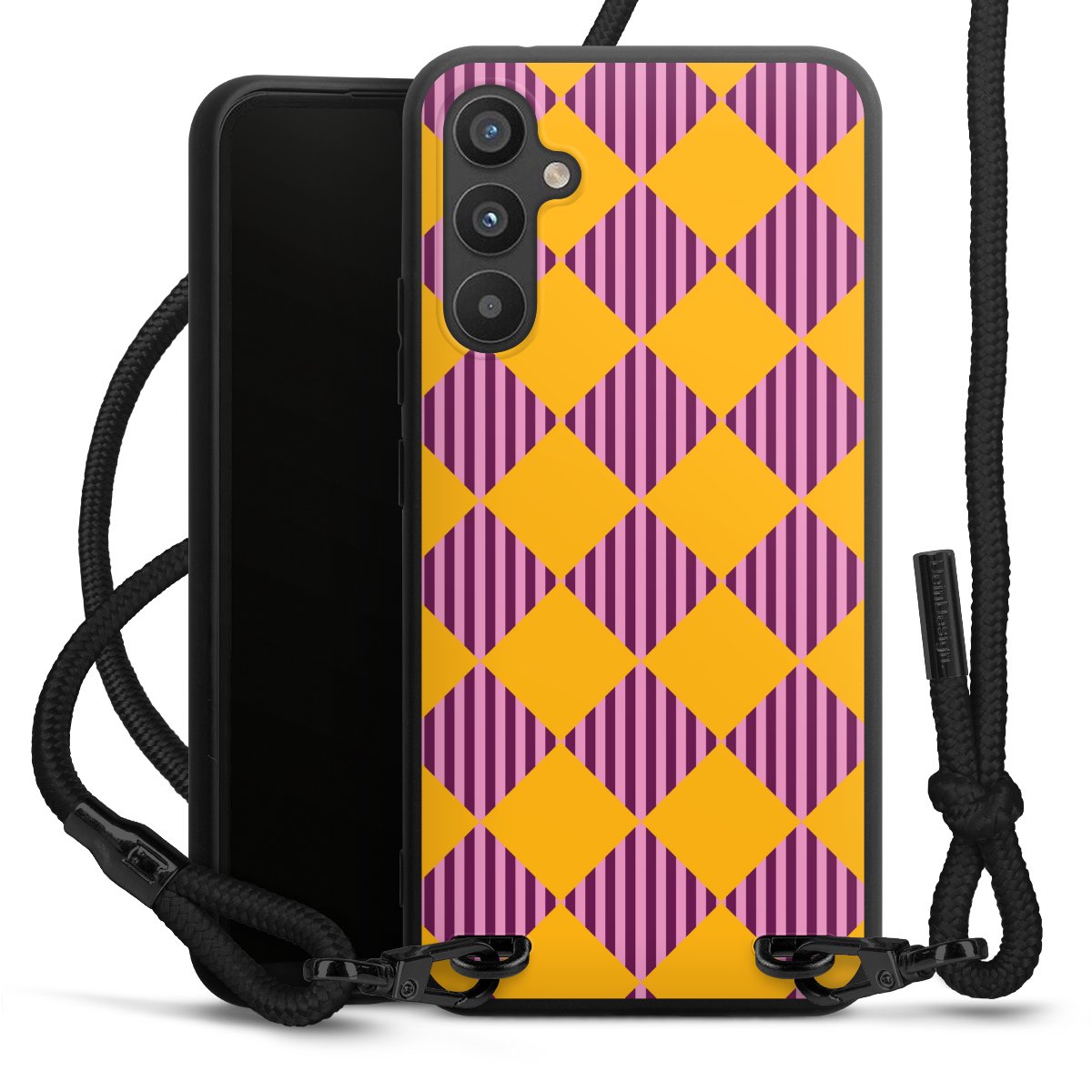 We use the solid direct print process for this phone case, which is why the print area only covers the back and the edge remains unprinted. The case to wear around your neck can be ordered unprinted, fully printed, or partially printed. For your design, either choose one of our exclusive shop motifs or get creative and create your own design, for example with photos and overlays. Design your own personal trend accessory and make an individual statement on the streets!