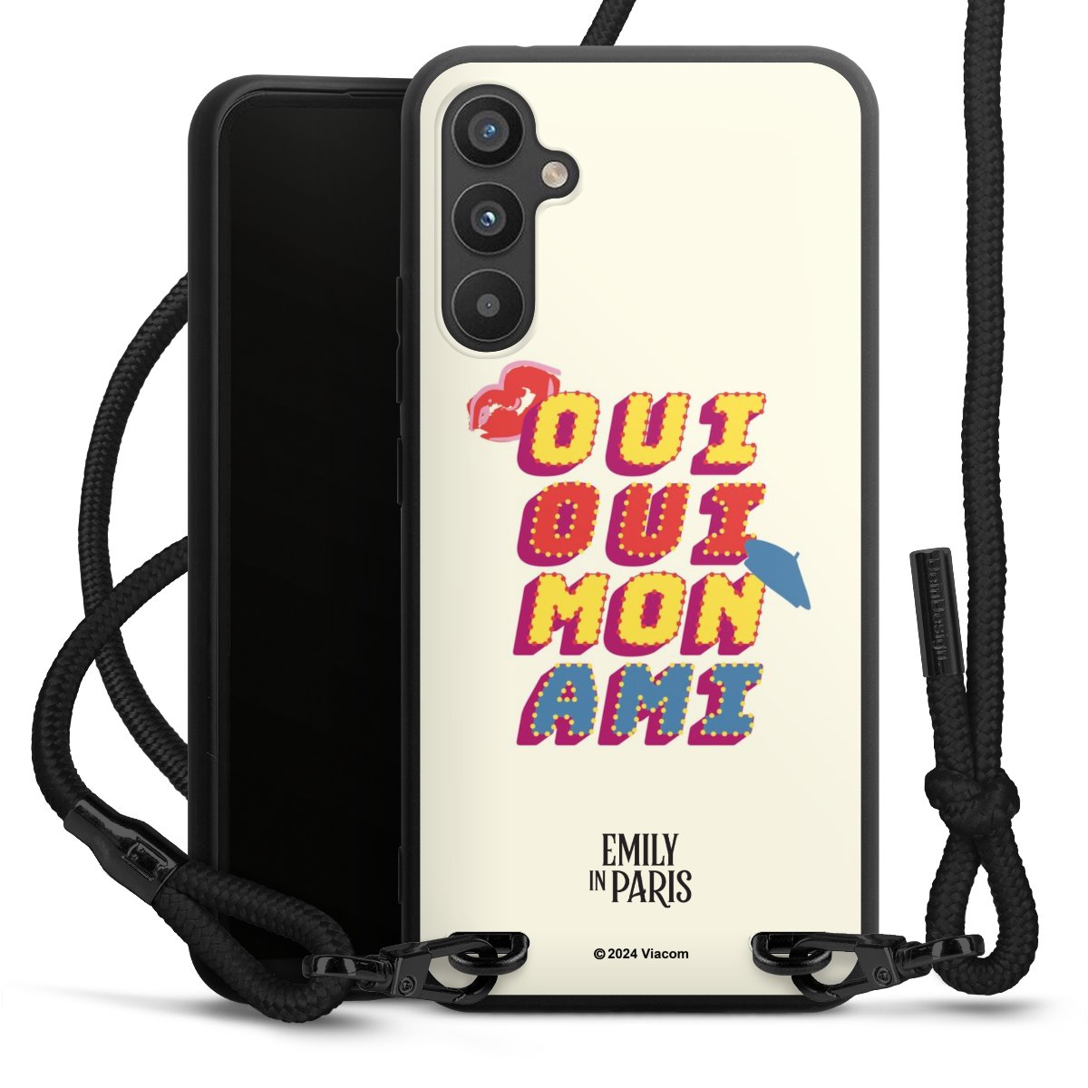 The matt black silicone case is made of flexible TPU (thermoplastic polyurethane) and offers robust protection. The durable, unbreakable material makes the cover flexible and dimensionally stable at the same time. The matte surface makes your design stand out more and is less susceptible to fingerprints and dirt. The stylish trend accessory fits comfortably in the hand and is perfectly complemented by the fabric (polyester) mobile phone strap. The braided fabric strap is approx. 1.70 metres long with a diameter of approx. 0.5 cm. Due to the special knotting technique, the length of the strap can be adjusted by simply pulling it, so that you can adapt it individually to your wishes. The practical case to wear around your neck is available with the fabric strap in black. As a little icing on the cake, we have provided the strap with a chic metal fastener in matt black. The strap is securely fastened to the case with loops made of high-quality genuine leather and press studs. The ends of the fabric strap are covered with metallic end caps and thus protected from fraying.