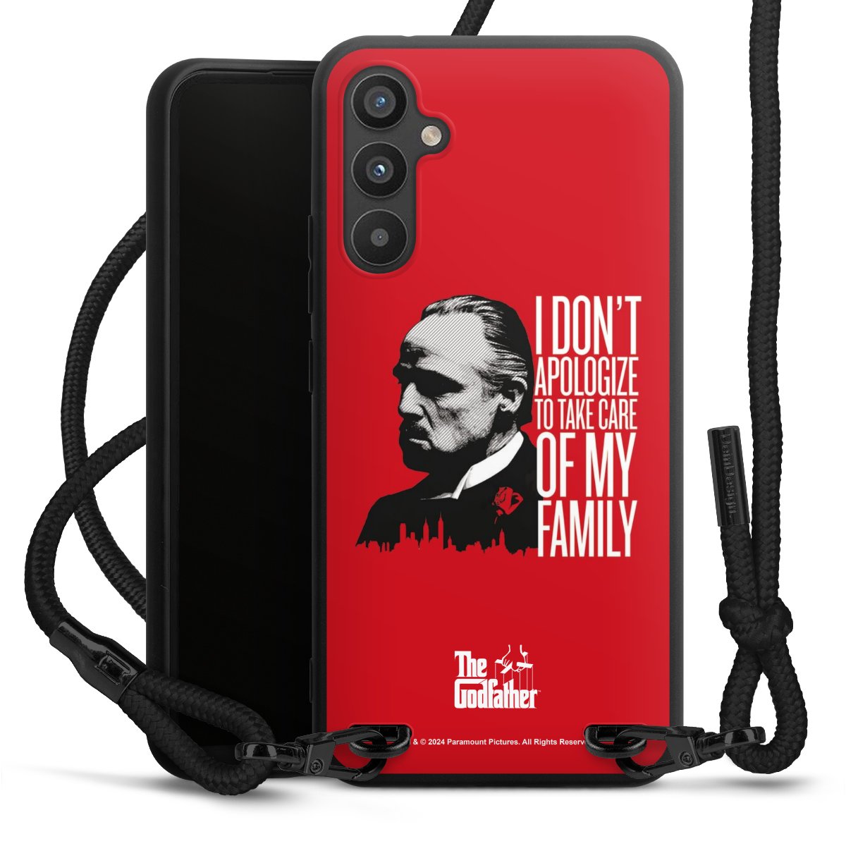 The matt black silicone case is made of flexible TPU (thermoplastic polyurethane) and offers robust protection. The durable, unbreakable material makes the cover flexible and dimensionally stable at the same time. The matte surface makes your design stand out more and is less susceptible to fingerprints and dirt. The stylish trend accessory fits comfortably in the hand and is perfectly complemented by the fabric (polyester) mobile phone strap. The braided fabric strap is approx. 1.70 metres long with a diameter of approx. 0.5 cm. Due to the special knotting technique, the length of the strap can be adjusted by simply pulling it, so that you can adapt it individually to your wishes. The practical case to wear around your neck is available with the fabric strap in black. As a little icing on the cake, we have provided the strap with a chic metal fastener in matt black. The strap is securely fastened to the case with loops made of high-quality genuine leather and press studs. The ends of the fabric strap are covered with metallic end caps and thus protected from fraying.