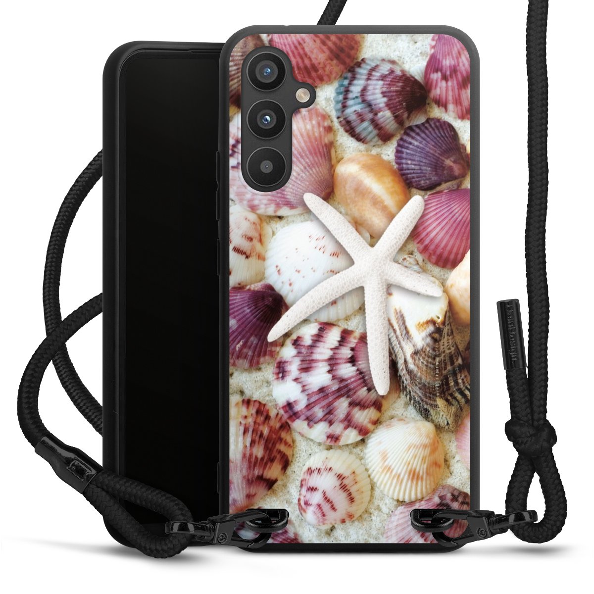 The matt black silicone case is made of flexible TPU (thermoplastic polyurethane) and offers robust protection. The durable, unbreakable material makes the cover flexible and dimensionally stable at the same time. The matte surface makes your design stand out more and is less susceptible to fingerprints and dirt. The stylish trend accessory fits comfortably in the hand and is perfectly complemented by the fabric (polyester) mobile phone strap. The braided fabric strap is approx. 1.70 metres long with a diameter of approx. 0.5 cm. Due to the special knotting technique, the length of the strap can be adjusted by simply pulling it, so that you can adapt it individually to your wishes. The practical case to wear around your neck is available with the fabric strap in black. As a little icing on the cake, we have provided the strap with a chic metal fastener in matt black. The strap is securely fastened to the case with loops made of high-quality genuine leather and press studs. The ends of the fabric strap are covered with metallic end caps and thus protected from fraying.