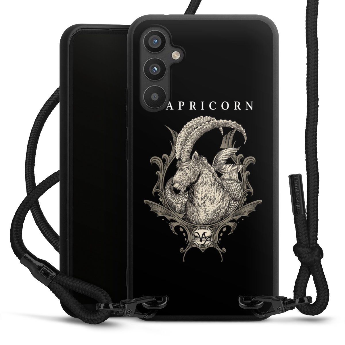The matt black silicone case is made of flexible TPU (thermoplastic polyurethane) and offers robust protection. The durable, unbreakable material makes the cover flexible and dimensionally stable at the same time. The matte surface makes your design stand out more and is less susceptible to fingerprints and dirt. The stylish trend accessory fits comfortably in the hand and is perfectly complemented by the fabric (polyester) mobile phone strap. The braided fabric strap is approx. 1.70 metres long with a diameter of approx. 0.5 cm. Due to the special knotting technique, the length of the strap can be adjusted by simply pulling it, so that you can adapt it individually to your wishes. The practical case to wear around your neck is available with the fabric strap in black. As a little icing on the cake, we have provided the strap with a chic metal fastener in matt black. The strap is securely fastened to the case with loops made of high-quality genuine leather and press studs. The ends of the fabric strap are covered with metallic end caps and thus protected from fraying.