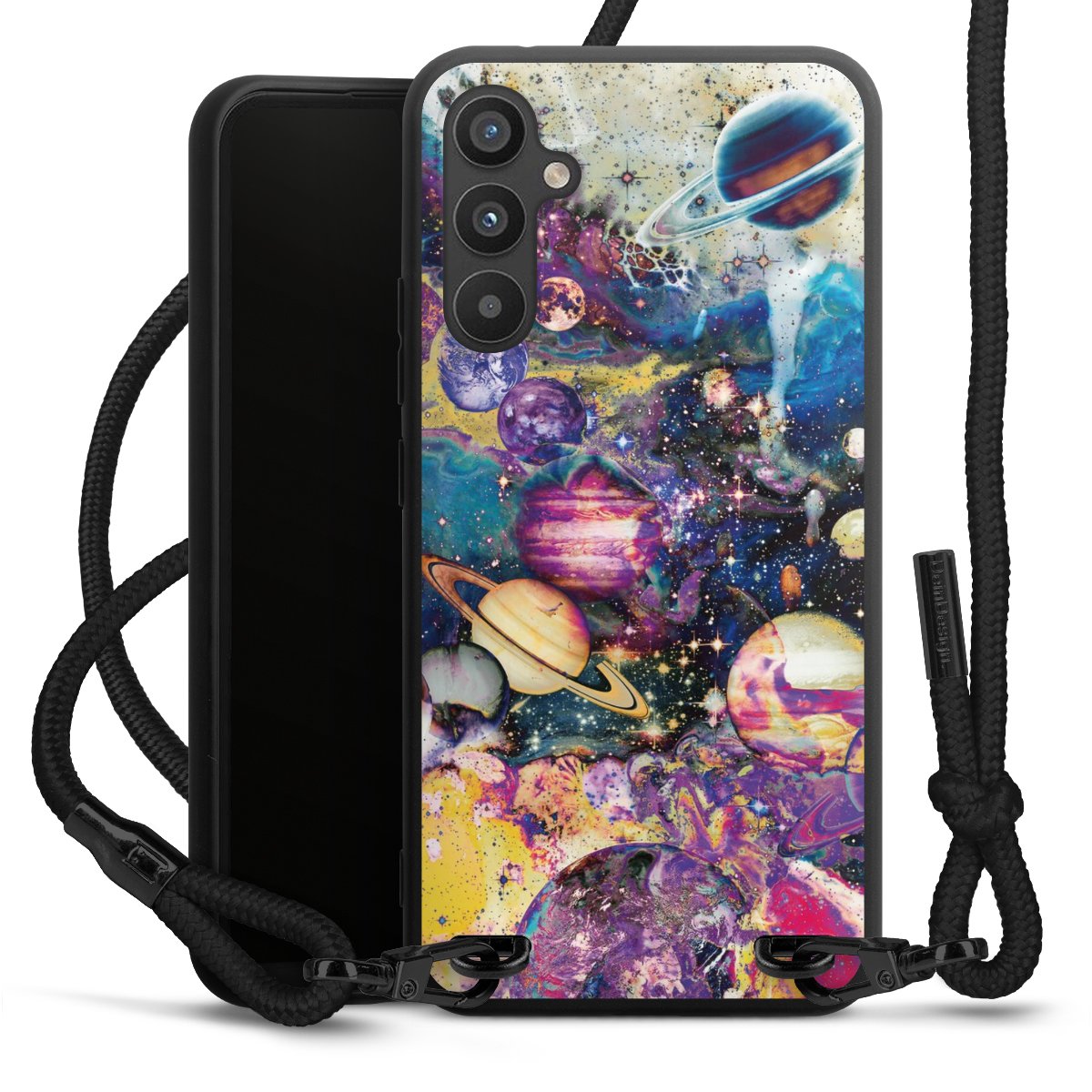 We use the solid direct print process for this phone case, which is why the print area only covers the back and the edge remains unprinted. The case to wear around your neck can be ordered unprinted, fully printed, or partially printed. For your design, either choose one of our exclusive shop motifs or get creative and create your own design, for example with photos and overlays. Design your own personal trend accessory and make an individual statement on the streets!