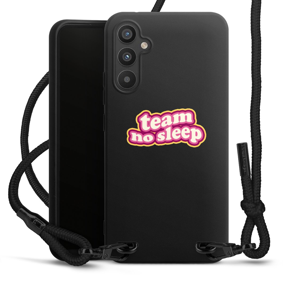 The matt black silicone case is made of flexible TPU (thermoplastic polyurethane) and offers robust protection. The durable, unbreakable material makes the cover flexible and dimensionally stable at the same time. The matte surface makes your design stand out more and is less susceptible to fingerprints and dirt. The stylish trend accessory fits comfortably in the hand and is perfectly complemented by the fabric (polyester) mobile phone strap. The braided fabric strap is approx. 1.70 metres long with a diameter of approx. 0.5 cm. Due to the special knotting technique, the length of the strap can be adjusted by simply pulling it, so that you can adapt it individually to your wishes. The practical case to wear around your neck is available with the fabric strap in black. As a little icing on the cake, we have provided the strap with a chic metal fastener in matt black. The strap is securely fastened to the case with loops made of high-quality genuine leather and press studs. The ends of the fabric strap are covered with metallic end caps and thus protected from fraying.