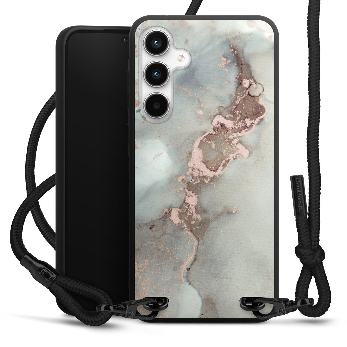 The matt black silicone case is made of flexible TPU (thermoplastic polyurethane) and offers robust protection. The durable, unbreakable material makes the cover flexible and dimensionally stable at the same time. The matte surface makes your design stand out more and is less susceptible to fingerprints and dirt. The stylish trend accessory fits comfortably in the hand and is perfectly complemented by the fabric (polyester) mobile phone strap. The braided fabric strap is approx. 1.70 metres long with a diameter of approx. 0.5 cm. Due to the special knotting technique, the length of the strap can be adjusted by simply pulling it, so that you can adapt it individually to your wishes. The practical case to wear around your neck is available with the fabric strap in black. As a little icing on the cake, we have provided the strap with a chic metal fastener in matt black. The strap is securely fastened to the case with loops made of high-quality genuine leather and press studs. The ends of the fabric strap are covered with metallic end caps and thus protected from fraying.
