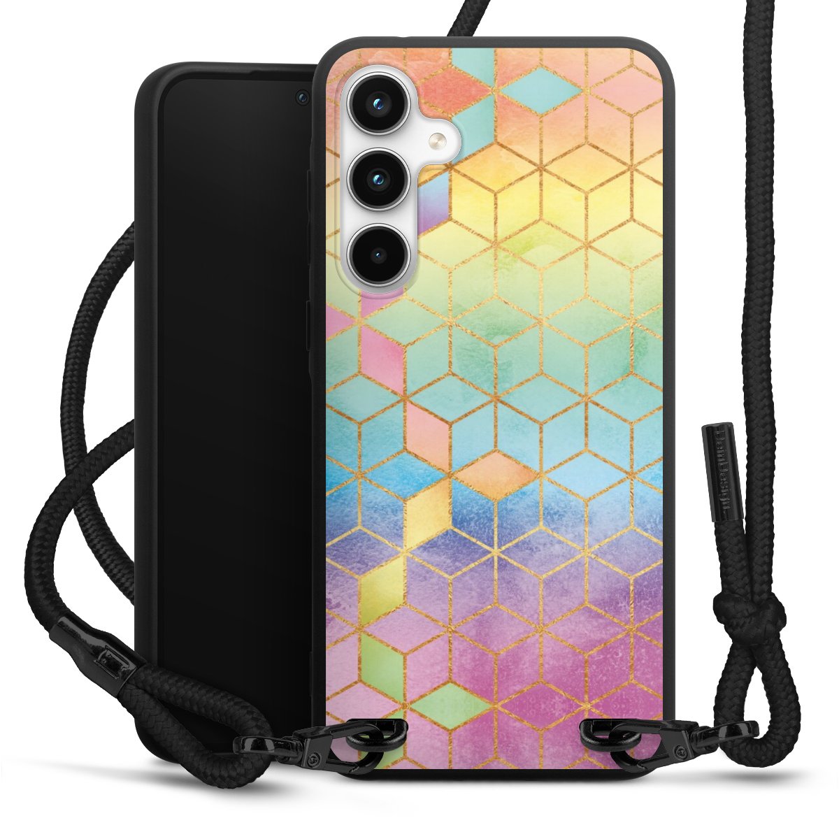 We use the solid direct print process for this phone case, which is why the print area only covers the back and the edge remains unprinted. The case to wear around your neck can be ordered unprinted, fully printed, or partially printed. For your design, either choose one of our exclusive shop motifs or get creative and create your own design, for example with photos and overlays. Design your own personal trend accessory and make an individual statement on the streets!