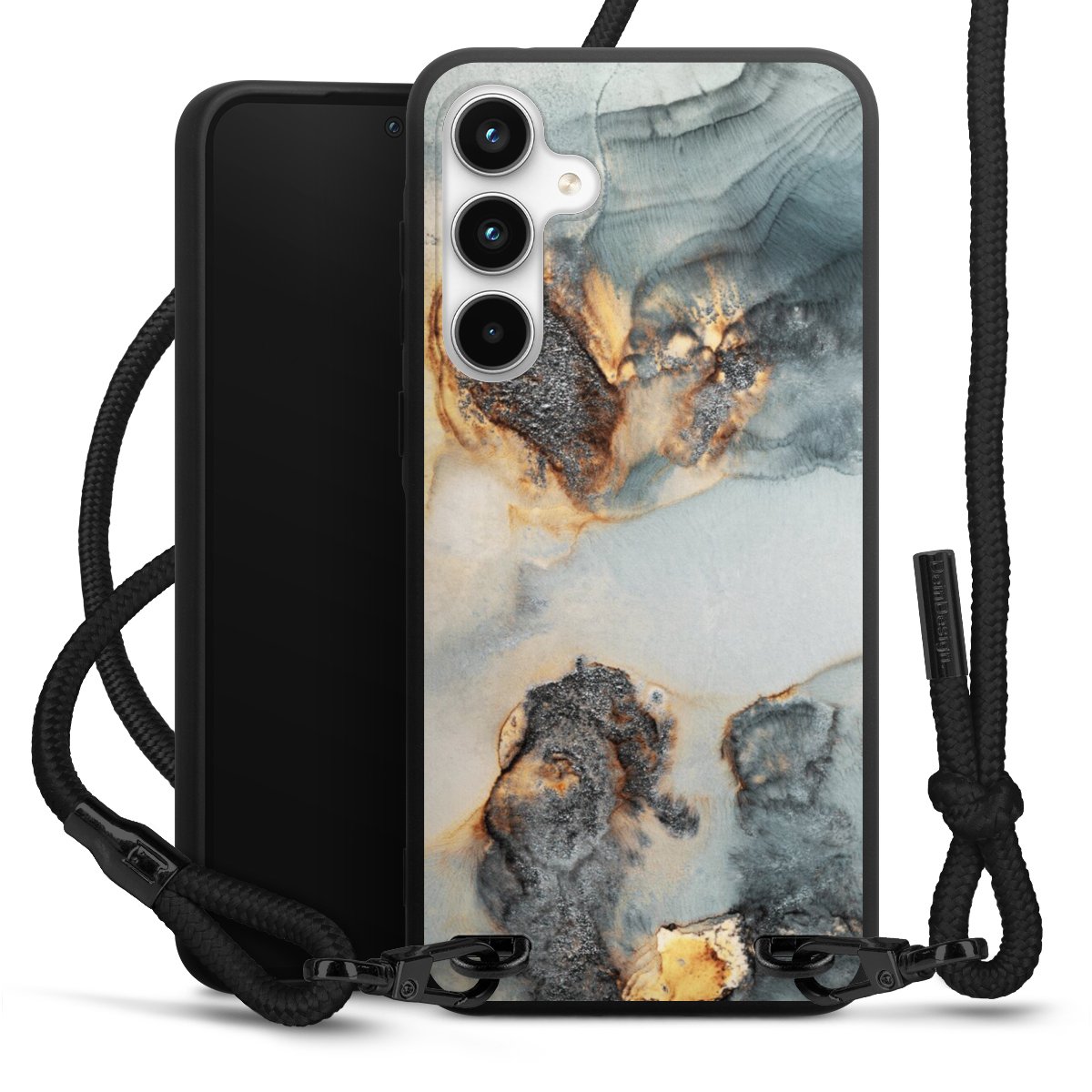 The matt black silicone case is made of flexible TPU (thermoplastic polyurethane) and offers robust protection. The durable, unbreakable material makes the cover flexible and dimensionally stable at the same time. The matte surface makes your design stand out more and is less susceptible to fingerprints and dirt. The stylish trend accessory fits comfortably in the hand and is perfectly complemented by the fabric (polyester) mobile phone strap. The braided fabric strap is approx. 1.70 metres long with a diameter of approx. 0.5 cm. Due to the special knotting technique, the length of the strap can be adjusted by simply pulling it, so that you can adapt it individually to your wishes. The practical case to wear around your neck is available with the fabric strap in black. As a little icing on the cake, we have provided the strap with a chic metal fastener in matt black. The strap is securely fastened to the case with loops made of high-quality genuine leather and press studs. The ends of the fabric strap are covered with metallic end caps and thus protected from fraying.