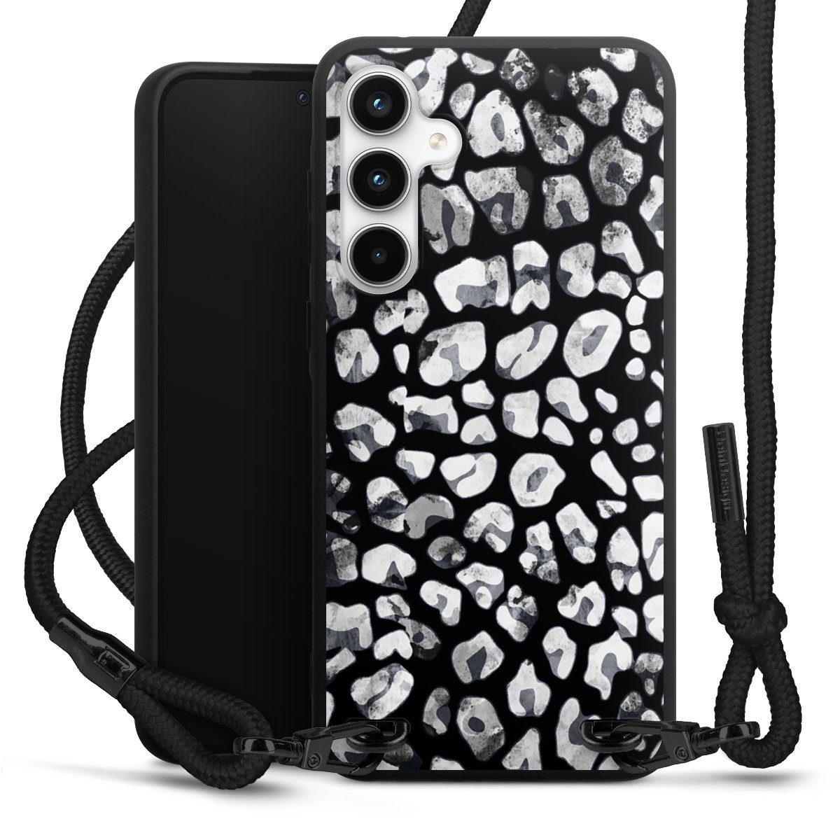 The matt black silicone case is made of flexible TPU (thermoplastic polyurethane) and offers robust protection. The durable, unbreakable material makes the cover flexible and dimensionally stable at the same time. The matte surface makes your design stand out more and is less susceptible to fingerprints and dirt. The stylish trend accessory fits comfortably in the hand and is perfectly complemented by the fabric (polyester) mobile phone strap. The braided fabric strap is approx. 1.70 metres long with a diameter of approx. 0.5 cm. Due to the special knotting technique, the length of the strap can be adjusted by simply pulling it, so that you can adapt it individually to your wishes. The practical case to wear around your neck is available with the fabric strap in black. As a little icing on the cake, we have provided the strap with a chic metal fastener in matt black. The strap is securely fastened to the case with loops made of high-quality genuine leather and press studs. The ends of the fabric strap are covered with metallic end caps and thus protected from fraying.
