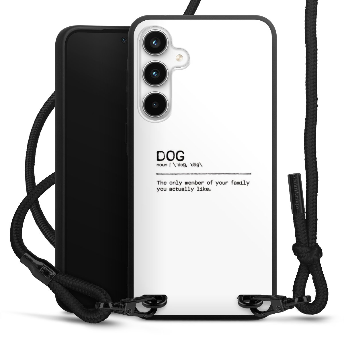The matt black silicone case is made of flexible TPU (thermoplastic polyurethane) and offers robust protection. The durable, unbreakable material makes the cover flexible and dimensionally stable at the same time. The matte surface makes your design stand out more and is less susceptible to fingerprints and dirt. The stylish trend accessory fits comfortably in the hand and is perfectly complemented by the fabric (polyester) mobile phone strap. The braided fabric strap is approx. 1.70 metres long with a diameter of approx. 0.5 cm. Due to the special knotting technique, the length of the strap can be adjusted by simply pulling it, so that you can adapt it individually to your wishes. The practical case to wear around your neck is available with the fabric strap in black. As a little icing on the cake, we have provided the strap with a chic metal fastener in matt black. The strap is securely fastened to the case with loops made of high-quality genuine leather and press studs. The ends of the fabric strap are covered with metallic end caps and thus protected from fraying.