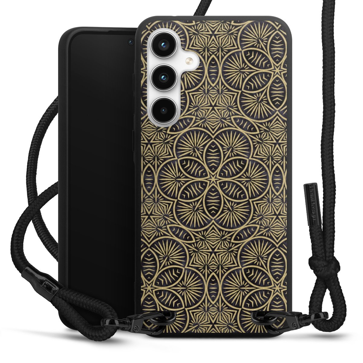 The matt black silicone case is made of flexible TPU (thermoplastic polyurethane) and offers robust protection. The durable, unbreakable material makes the cover flexible and dimensionally stable at the same time. The matte surface makes your design stand out more and is less susceptible to fingerprints and dirt. The stylish trend accessory fits comfortably in the hand and is perfectly complemented by the fabric (polyester) mobile phone strap. The braided fabric strap is approx. 1.70 metres long with a diameter of approx. 0.5 cm. Due to the special knotting technique, the length of the strap can be adjusted by simply pulling it, so that you can adapt it individually to your wishes. The practical case to wear around your neck is available with the fabric strap in black. As a little icing on the cake, we have provided the strap with a chic metal fastener in matt black. The strap is securely fastened to the case with loops made of high-quality genuine leather and press studs. The ends of the fabric strap are covered with metallic end caps and thus protected from fraying.