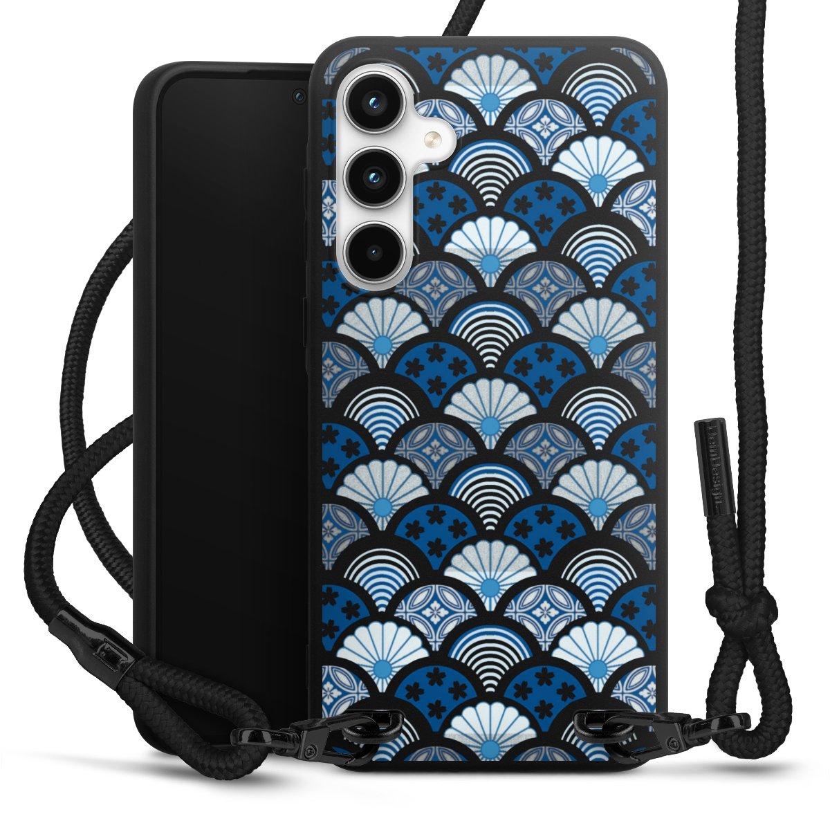The matt black silicone case is made of flexible TPU (thermoplastic polyurethane) and offers robust protection. The durable, unbreakable material makes the cover flexible and dimensionally stable at the same time. The matte surface makes your design stand out more and is less susceptible to fingerprints and dirt. The stylish trend accessory fits comfortably in the hand and is perfectly complemented by the fabric (polyester) mobile phone strap. The braided fabric strap is approx. 1.70 metres long with a diameter of approx. 0.5 cm. Due to the special knotting technique, the length of the strap can be adjusted by simply pulling it, so that you can adapt it individually to your wishes. The practical case to wear around your neck is available with the fabric strap in black. As a little icing on the cake, we have provided the strap with a chic metal fastener in matt black. The strap is securely fastened to the case with loops made of high-quality genuine leather and press studs. The ends of the fabric strap are covered with metallic end caps and thus protected from fraying.