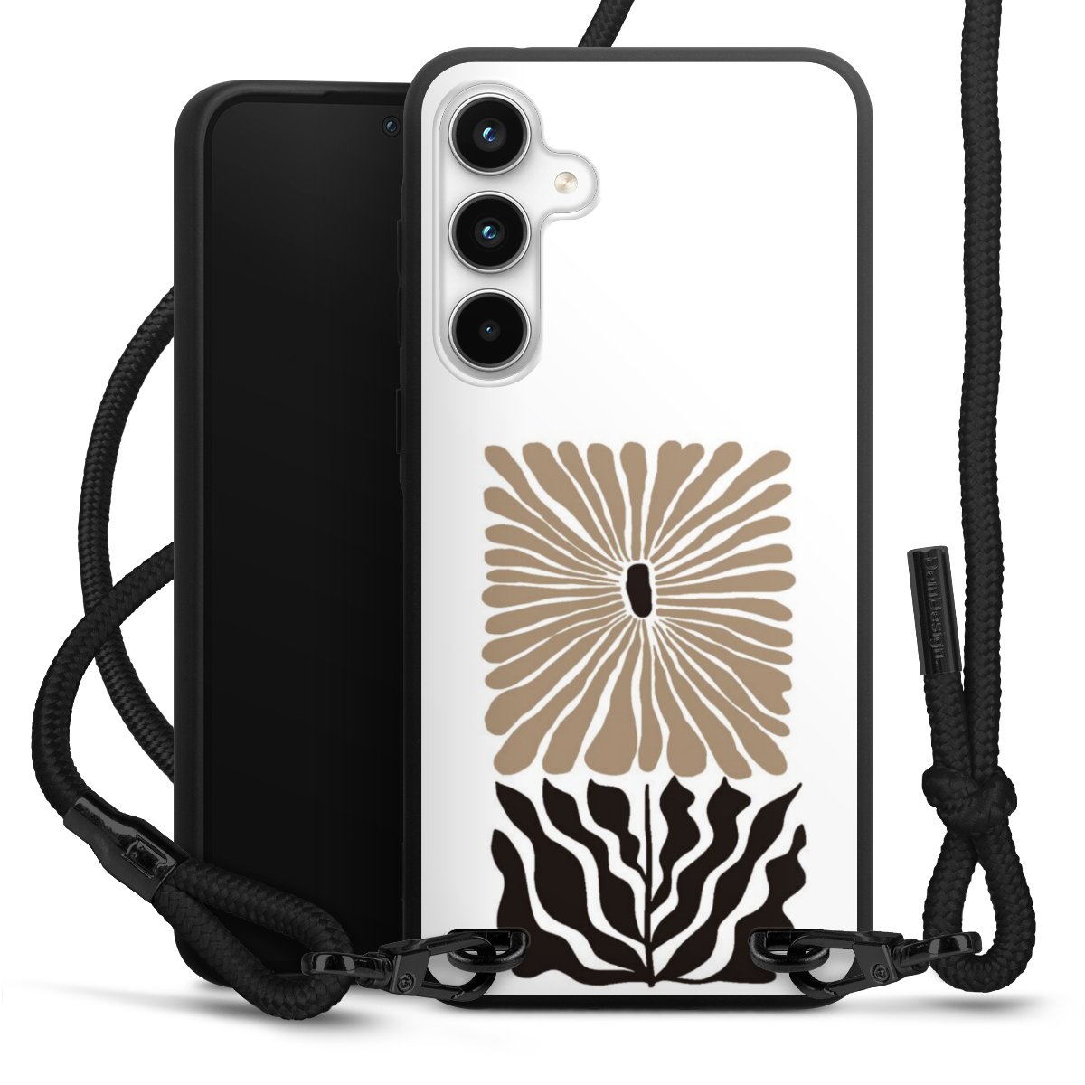 The matt black silicone case is made of flexible TPU (thermoplastic polyurethane) and offers robust protection. The durable, unbreakable material makes the cover flexible and dimensionally stable at the same time. The matte surface makes your design stand out more and is less susceptible to fingerprints and dirt. The stylish trend accessory fits comfortably in the hand and is perfectly complemented by the fabric (polyester) mobile phone strap. The braided fabric strap is approx. 1.70 metres long with a diameter of approx. 0.5 cm. Due to the special knotting technique, the length of the strap can be adjusted by simply pulling it, so that you can adapt it individually to your wishes. The practical case to wear around your neck is available with the fabric strap in black. As a little icing on the cake, we have provided the strap with a chic metal fastener in matt black. The strap is securely fastened to the case with loops made of high-quality genuine leather and press studs. The ends of the fabric strap are covered with metallic end caps and thus protected from fraying.