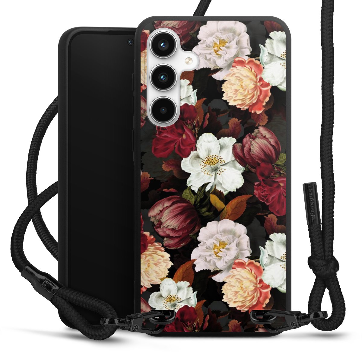 The matt black silicone case is made of flexible TPU (thermoplastic polyurethane) and offers robust protection. The durable, unbreakable material makes the cover flexible and dimensionally stable at the same time. The matte surface makes your design stand out more and is less susceptible to fingerprints and dirt. The stylish trend accessory fits comfortably in the hand and is perfectly complemented by the fabric (polyester) mobile phone strap. The braided fabric strap is approx. 1.70 metres long with a diameter of approx. 0.5 cm. Due to the special knotting technique, the length of the strap can be adjusted by simply pulling it, so that you can adapt it individually to your wishes. The practical case to wear around your neck is available with the fabric strap in black. As a little icing on the cake, we have provided the strap with a chic metal fastener in matt black. The strap is securely fastened to the case with loops made of high-quality genuine leather and press studs. The ends of the fabric strap are covered with metallic end caps and thus protected from fraying.