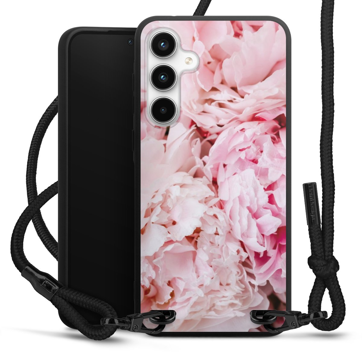 The matt black silicone case is made of flexible TPU (thermoplastic polyurethane) and offers robust protection. The durable, unbreakable material makes the cover flexible and dimensionally stable at the same time. The matte surface makes your design stand out more and is less susceptible to fingerprints and dirt. The stylish trend accessory fits comfortably in the hand and is perfectly complemented by the fabric (polyester) mobile phone strap. The braided fabric strap is approx. 1.70 metres long with a diameter of approx. 0.5 cm. Due to the special knotting technique, the length of the strap can be adjusted by simply pulling it, so that you can adapt it individually to your wishes. The practical case to wear around your neck is available with the fabric strap in black. As a little icing on the cake, we have provided the strap with a chic metal fastener in matt black. The strap is securely fastened to the case with loops made of high-quality genuine leather and press studs. The ends of the fabric strap are covered with metallic end caps and thus protected from fraying.