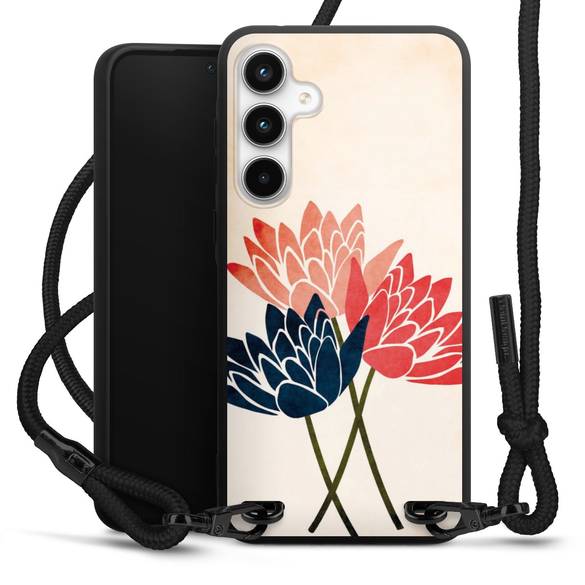The matt black silicone case is made of flexible TPU (thermoplastic polyurethane) and offers robust protection. The durable, unbreakable material makes the cover flexible and dimensionally stable at the same time. The matte surface makes your design stand out more and is less susceptible to fingerprints and dirt. The stylish trend accessory fits comfortably in the hand and is perfectly complemented by the fabric (polyester) mobile phone strap. The braided fabric strap is approx. 1.70 metres long with a diameter of approx. 0.5 cm. Due to the special knotting technique, the length of the strap can be adjusted by simply pulling it, so that you can adapt it individually to your wishes. The practical case to wear around your neck is available with the fabric strap in black. As a little icing on the cake, we have provided the strap with a chic metal fastener in matt black. The strap is securely fastened to the case with loops made of high-quality genuine leather and press studs. The ends of the fabric strap are covered with metallic end caps and thus protected from fraying.