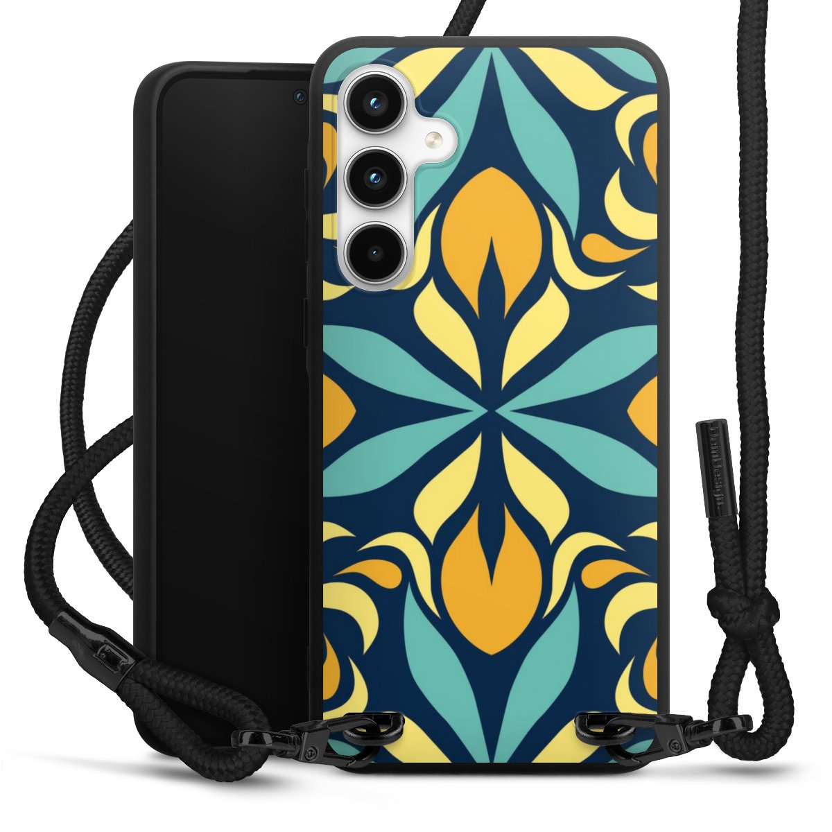 The matt black silicone case is made of flexible TPU (thermoplastic polyurethane) and offers robust protection. The durable, unbreakable material makes the cover flexible and dimensionally stable at the same time. The matte surface makes your design stand out more and is less susceptible to fingerprints and dirt. The stylish trend accessory fits comfortably in the hand and is perfectly complemented by the fabric (polyester) mobile phone strap. The braided fabric strap is approx. 1.70 metres long with a diameter of approx. 0.5 cm. Due to the special knotting technique, the length of the strap can be adjusted by simply pulling it, so that you can adapt it individually to your wishes. The practical case to wear around your neck is available with the fabric strap in black. As a little icing on the cake, we have provided the strap with a chic metal fastener in matt black. The strap is securely fastened to the case with loops made of high-quality genuine leather and press studs. The ends of the fabric strap are covered with metallic end caps and thus protected from fraying.