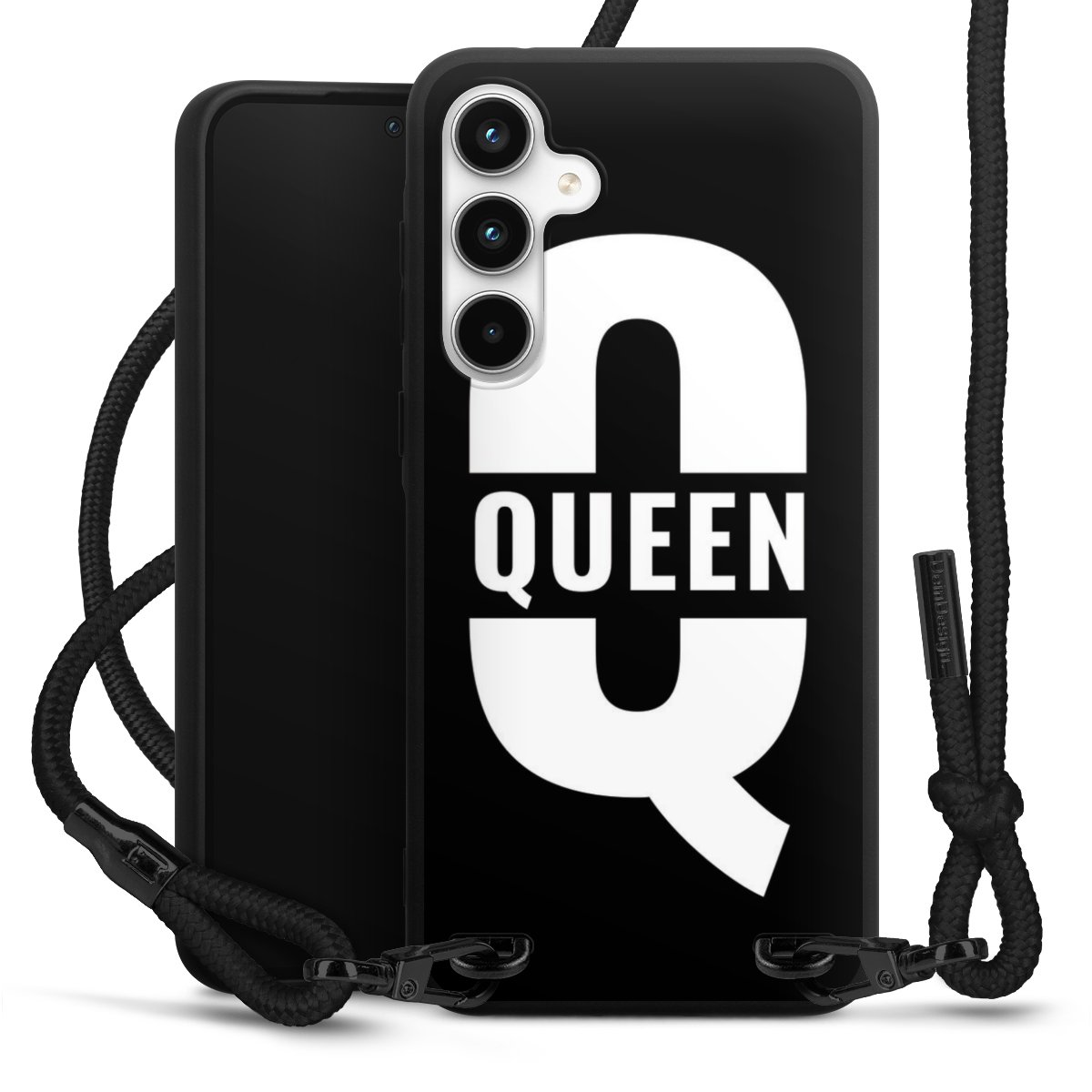 The matt black silicone case is made of flexible TPU (thermoplastic polyurethane) and offers robust protection. The durable, unbreakable material makes the cover flexible and dimensionally stable at the same time. The matte surface makes your design stand out more and is less susceptible to fingerprints and dirt. The stylish trend accessory fits comfortably in the hand and is perfectly complemented by the fabric (polyester) mobile phone strap. The braided fabric strap is approx. 1.70 metres long with a diameter of approx. 0.5 cm. Due to the special knotting technique, the length of the strap can be adjusted by simply pulling it, so that you can adapt it individually to your wishes. The practical case to wear around your neck is available with the fabric strap in black. As a little icing on the cake, we have provided the strap with a chic metal fastener in matt black. The strap is securely fastened to the case with loops made of high-quality genuine leather and press studs. The ends of the fabric strap are covered with metallic end caps and thus protected from fraying.