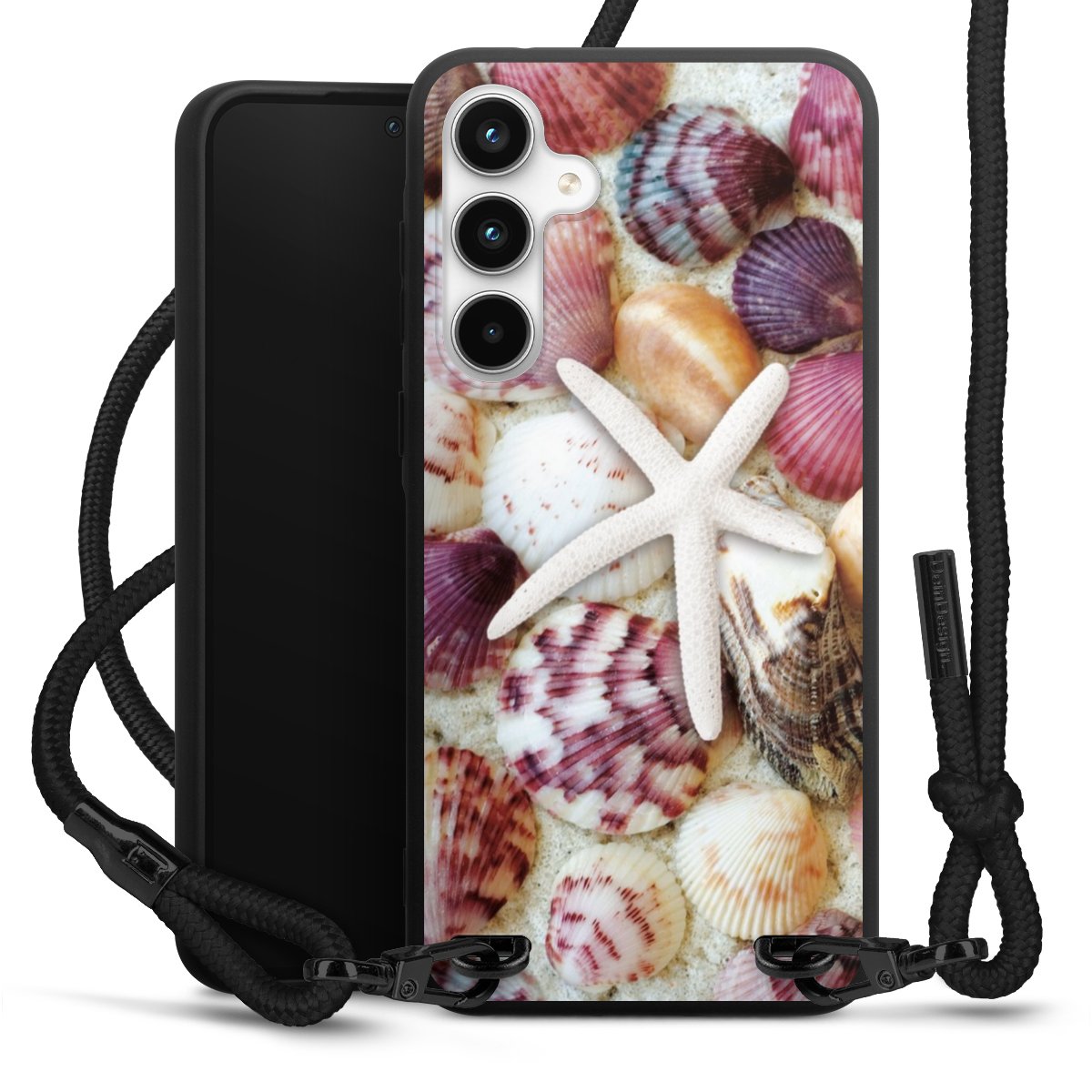 The matt black silicone case is made of flexible TPU (thermoplastic polyurethane) and offers robust protection. The durable, unbreakable material makes the cover flexible and dimensionally stable at the same time. The matte surface makes your design stand out more and is less susceptible to fingerprints and dirt. The stylish trend accessory fits comfortably in the hand and is perfectly complemented by the fabric (polyester) mobile phone strap. The braided fabric strap is approx. 1.70 metres long with a diameter of approx. 0.5 cm. Due to the special knotting technique, the length of the strap can be adjusted by simply pulling it, so that you can adapt it individually to your wishes. The practical case to wear around your neck is available with the fabric strap in black. As a little icing on the cake, we have provided the strap with a chic metal fastener in matt black. The strap is securely fastened to the case with loops made of high-quality genuine leather and press studs. The ends of the fabric strap are covered with metallic end caps and thus protected from fraying.