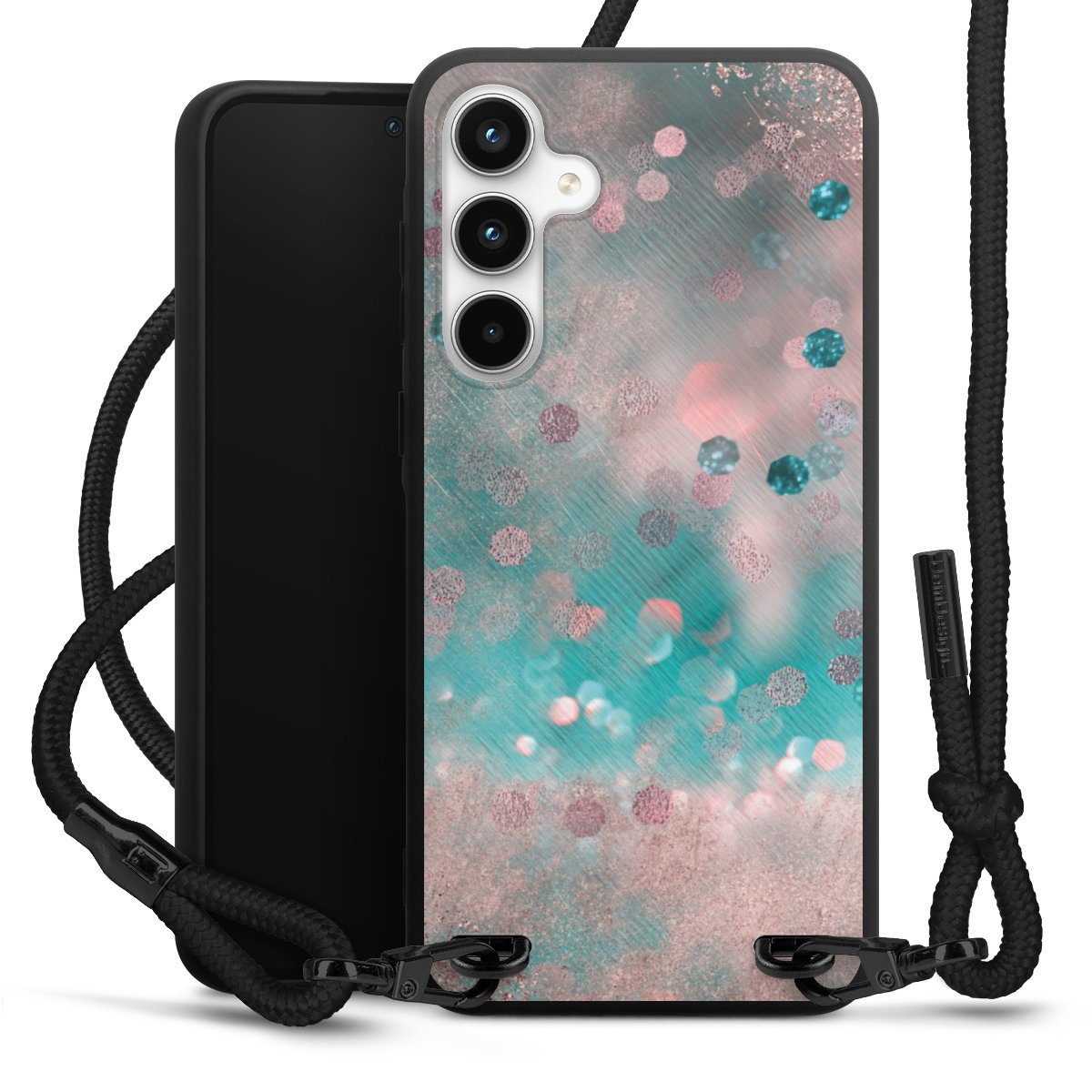The matt black silicone case is made of flexible TPU (thermoplastic polyurethane) and offers robust protection. The durable, unbreakable material makes the cover flexible and dimensionally stable at the same time. The matte surface makes your design stand out more and is less susceptible to fingerprints and dirt. The stylish trend accessory fits comfortably in the hand and is perfectly complemented by the fabric (polyester) mobile phone strap. The braided fabric strap is approx. 1.70 metres long with a diameter of approx. 0.5 cm. Due to the special knotting technique, the length of the strap can be adjusted by simply pulling it, so that you can adapt it individually to your wishes. The practical case to wear around your neck is available with the fabric strap in black. As a little icing on the cake, we have provided the strap with a chic metal fastener in matt black. The strap is securely fastened to the case with loops made of high-quality genuine leather and press studs. The ends of the fabric strap are covered with metallic end caps and thus protected from fraying.