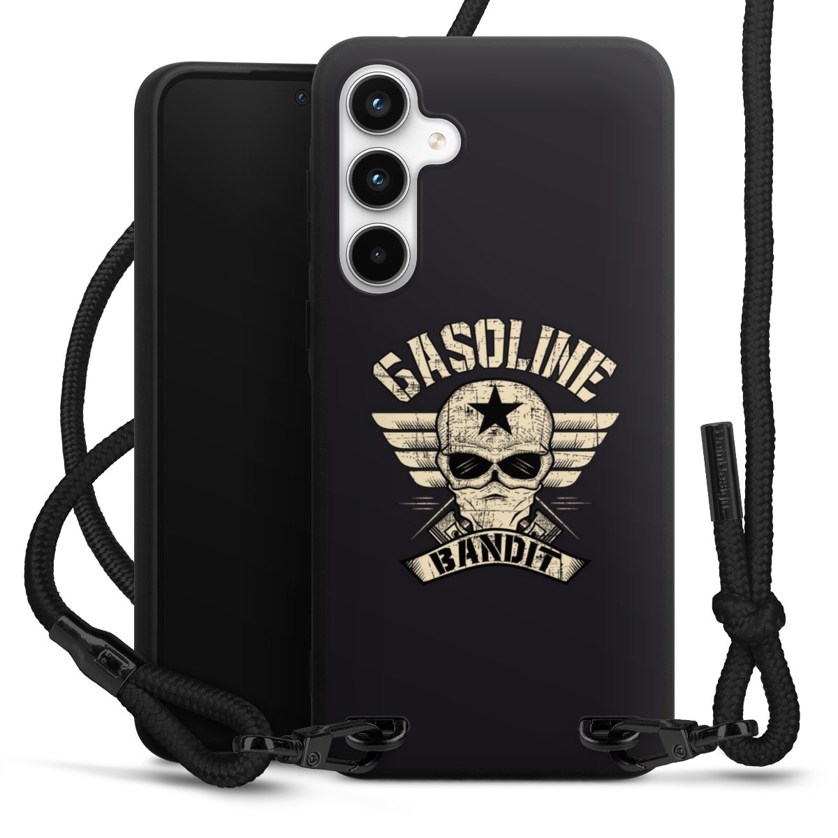 The matt black silicone case is made of flexible TPU (thermoplastic polyurethane) and offers robust protection. The durable, unbreakable material makes the cover flexible and dimensionally stable at the same time. The matte surface makes your design stand out more and is less susceptible to fingerprints and dirt. The stylish trend accessory fits comfortably in the hand and is perfectly complemented by the fabric (polyester) mobile phone strap. The braided fabric strap is approx. 1.70 metres long with a diameter of approx. 0.5 cm. Due to the special knotting technique, the length of the strap can be adjusted by simply pulling it, so that you can adapt it individually to your wishes. The practical case to wear around your neck is available with the fabric strap in black. As a little icing on the cake, we have provided the strap with a chic metal fastener in matt black. The strap is securely fastened to the case with loops made of high-quality genuine leather and press studs. The ends of the fabric strap are covered with metallic end caps and thus protected from fraying.
