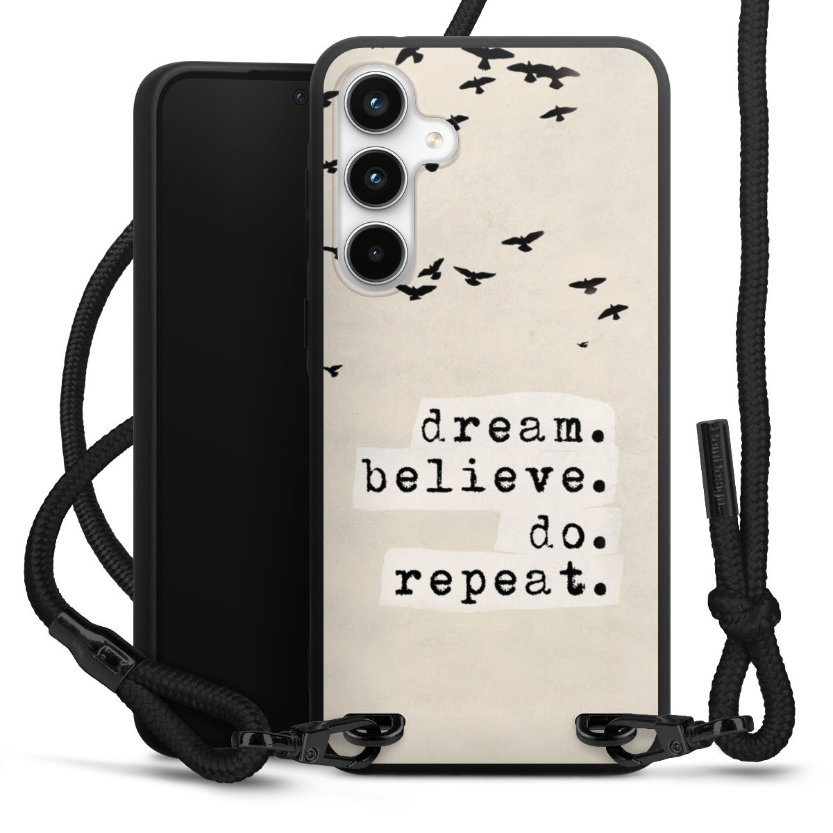 We use the solid direct print process for this phone case, which is why the print area only covers the back and the edge remains unprinted. The case to wear around your neck can be ordered unprinted, fully printed, or partially printed. For your design, either choose one of our exclusive shop motifs or get creative and create your own design, for example with photos and overlays. Design your own personal trend accessory and make an individual statement on the streets!