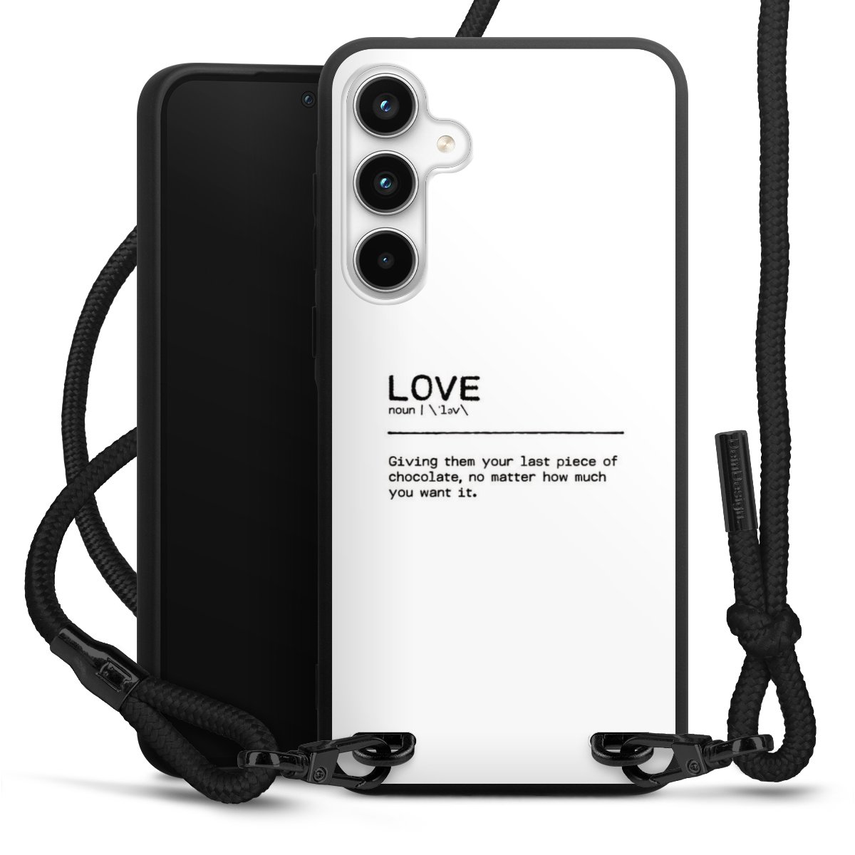 The matt black silicone case is made of flexible TPU (thermoplastic polyurethane) and offers robust protection. The durable, unbreakable material makes the cover flexible and dimensionally stable at the same time. The matte surface makes your design stand out more and is less susceptible to fingerprints and dirt. The stylish trend accessory fits comfortably in the hand and is perfectly complemented by the fabric (polyester) mobile phone strap. The braided fabric strap is approx. 1.70 metres long with a diameter of approx. 0.5 cm. Due to the special knotting technique, the length of the strap can be adjusted by simply pulling it, so that you can adapt it individually to your wishes. The practical case to wear around your neck is available with the fabric strap in black. As a little icing on the cake, we have provided the strap with a chic metal fastener in matt black. The strap is securely fastened to the case with loops made of high-quality genuine leather and press studs. The ends of the fabric strap are covered with metallic end caps and thus protected from fraying.