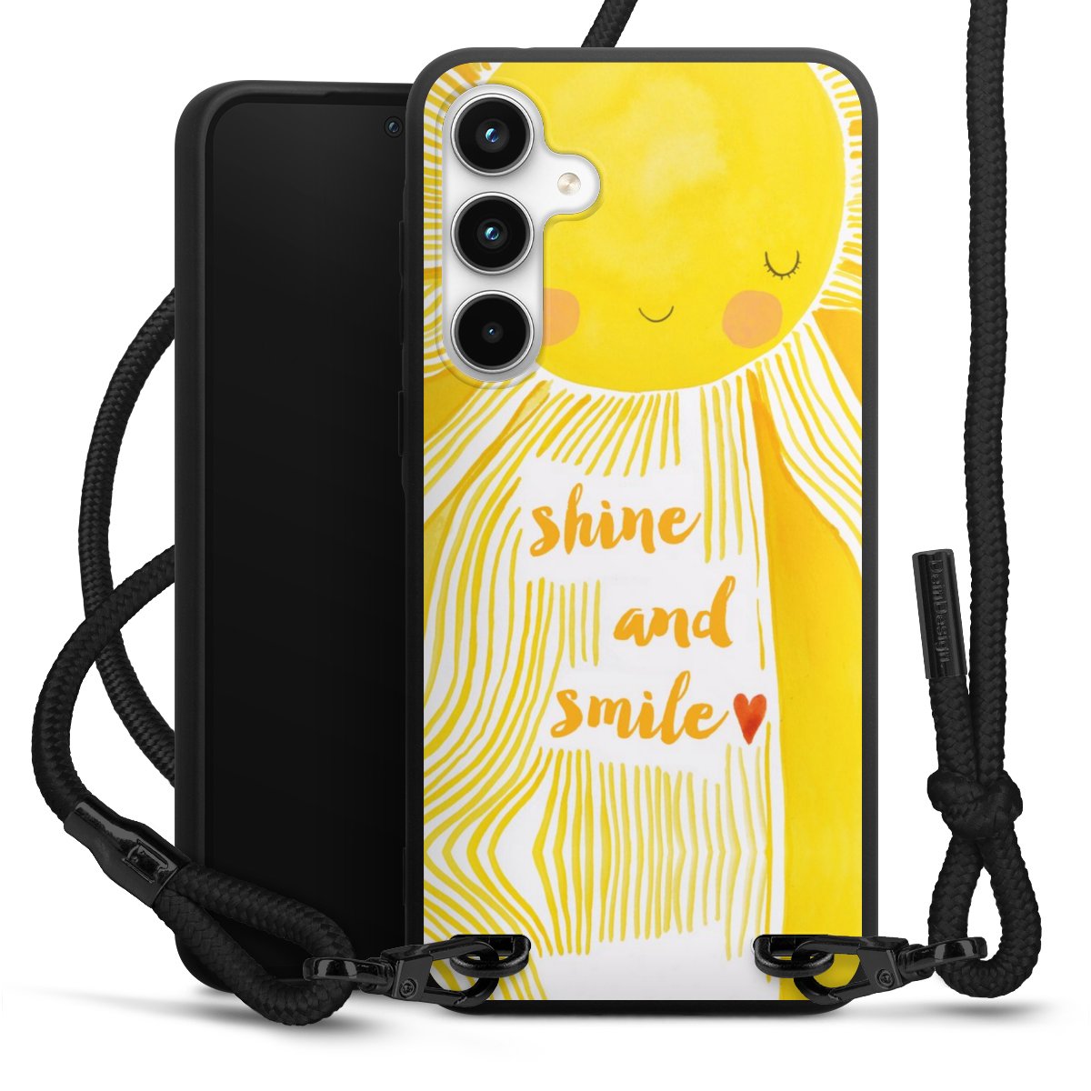 The matt black silicone case is made of flexible TPU (thermoplastic polyurethane) and offers robust protection. The durable, unbreakable material makes the cover flexible and dimensionally stable at the same time. The matte surface makes your design stand out more and is less susceptible to fingerprints and dirt. The stylish trend accessory fits comfortably in the hand and is perfectly complemented by the fabric (polyester) mobile phone strap. The braided fabric strap is approx. 1.70 metres long with a diameter of approx. 0.5 cm. Due to the special knotting technique, the length of the strap can be adjusted by simply pulling it, so that you can adapt it individually to your wishes. The practical case to wear around your neck is available with the fabric strap in black. As a little icing on the cake, we have provided the strap with a chic metal fastener in matt black. The strap is securely fastened to the case with loops made of high-quality genuine leather and press studs. The ends of the fabric strap are covered with metallic end caps and thus protected from fraying.