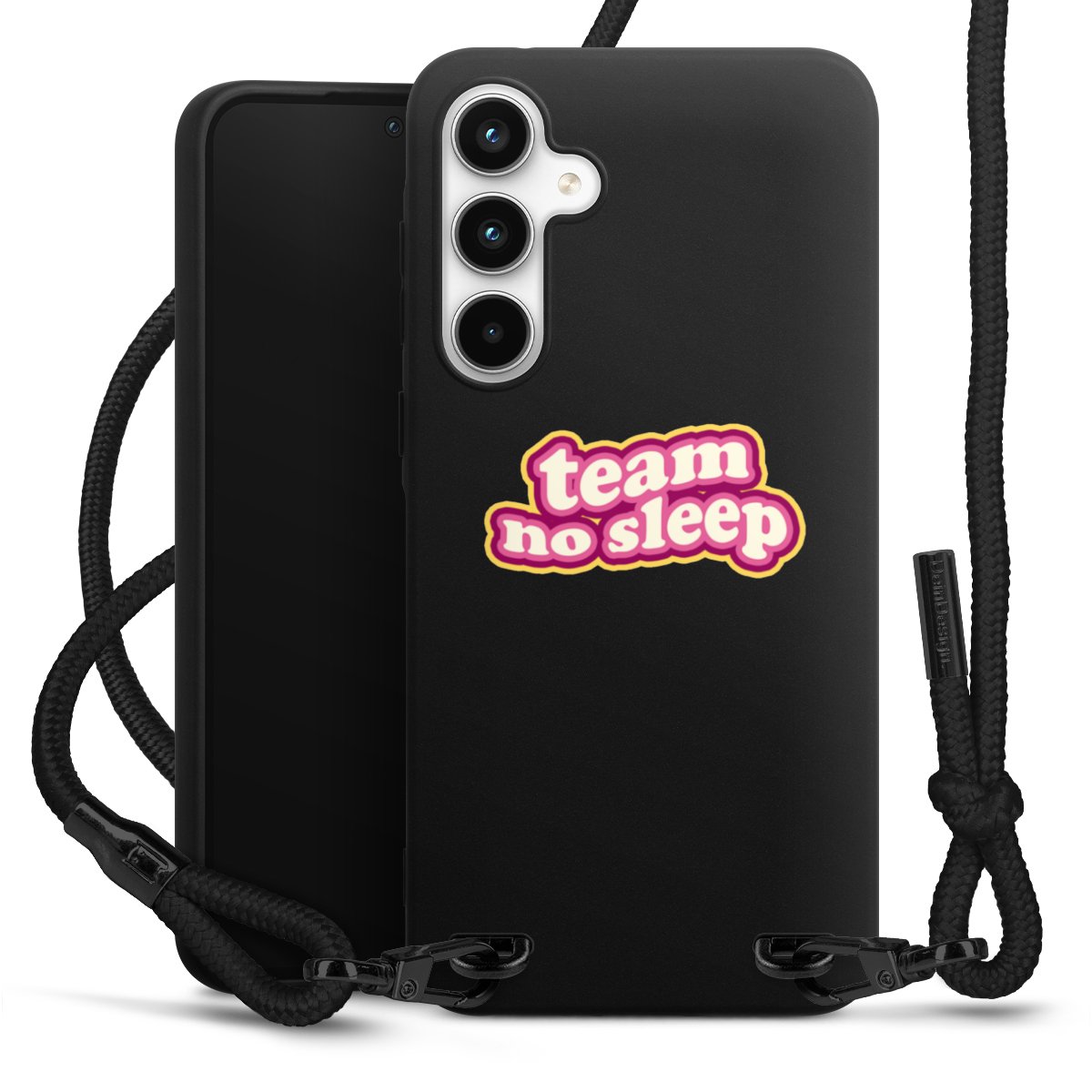 The matt black silicone case is made of flexible TPU (thermoplastic polyurethane) and offers robust protection. The durable, unbreakable material makes the cover flexible and dimensionally stable at the same time. The matte surface makes your design stand out more and is less susceptible to fingerprints and dirt. The stylish trend accessory fits comfortably in the hand and is perfectly complemented by the fabric (polyester) mobile phone strap. The braided fabric strap is approx. 1.70 metres long with a diameter of approx. 0.5 cm. Due to the special knotting technique, the length of the strap can be adjusted by simply pulling it, so that you can adapt it individually to your wishes. The practical case to wear around your neck is available with the fabric strap in black. As a little icing on the cake, we have provided the strap with a chic metal fastener in matt black. The strap is securely fastened to the case with loops made of high-quality genuine leather and press studs. The ends of the fabric strap are covered with metallic end caps and thus protected from fraying.