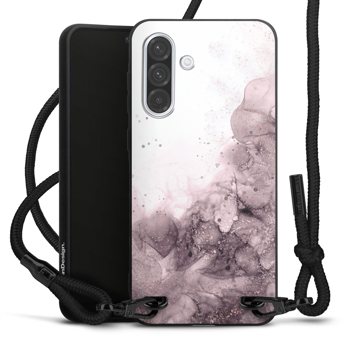 The matt black silicone case is made of flexible TPU (thermoplastic polyurethane) and offers robust protection. The durable, unbreakable material makes the cover flexible and dimensionally stable at the same time. The matte surface makes your design stand out more and is less susceptible to fingerprints and dirt. The stylish trend accessory fits comfortably in the hand and is perfectly complemented by the fabric (polyester) mobile phone strap. The braided fabric strap is approx. 1.70 metres long with a diameter of approx. 0.5 cm. Due to the special knotting technique, the length of the strap can be adjusted by simply pulling it, so that you can adapt it individually to your wishes. The practical case to wear around your neck is available with the fabric strap in black. As a little icing on the cake, we have provided the strap with a chic metal fastener in matt black. The strap is securely fastened to the case with loops made of high-quality genuine leather and press studs. The ends of the fabric strap are covered with metallic end caps and thus protected from fraying.