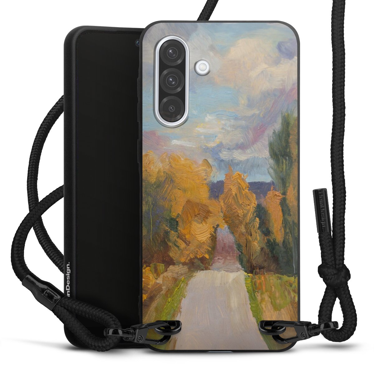 The matt black silicone case is made of flexible TPU (thermoplastic polyurethane) and offers robust protection. The durable, unbreakable material makes the cover flexible and dimensionally stable at the same time. The matte surface makes your design stand out more and is less susceptible to fingerprints and dirt. The stylish trend accessory fits comfortably in the hand and is perfectly complemented by the fabric (polyester) mobile phone strap. The braided fabric strap is approx. 1.70 metres long with a diameter of approx. 0.5 cm. Due to the special knotting technique, the length of the strap can be adjusted by simply pulling it, so that you can adapt it individually to your wishes. The practical case to wear around your neck is available with the fabric strap in black. As a little icing on the cake, we have provided the strap with a chic metal fastener in matt black. The strap is securely fastened to the case with loops made of high-quality genuine leather and press studs. The ends of the fabric strap are covered with metallic end caps and thus protected from fraying.