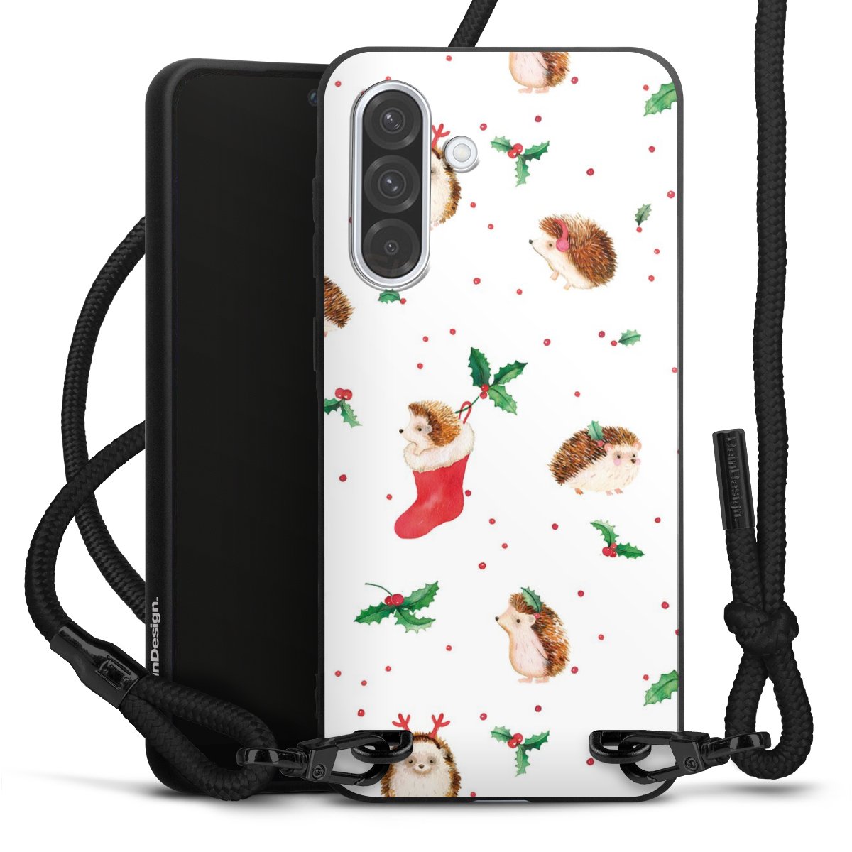 The matt black silicone case is made of flexible TPU (thermoplastic polyurethane) and offers robust protection. The durable, unbreakable material makes the cover flexible and dimensionally stable at the same time. The matte surface makes your design stand out more and is less susceptible to fingerprints and dirt. The stylish trend accessory fits comfortably in the hand and is perfectly complemented by the fabric (polyester) mobile phone strap. The braided fabric strap is approx. 1.70 metres long with a diameter of approx. 0.5 cm. Due to the special knotting technique, the length of the strap can be adjusted by simply pulling it, so that you can adapt it individually to your wishes. The practical case to wear around your neck is available with the fabric strap in black. As a little icing on the cake, we have provided the strap with a chic metal fastener in matt black. The strap is securely fastened to the case with loops made of high-quality genuine leather and press studs. The ends of the fabric strap are covered with metallic end caps and thus protected from fraying.