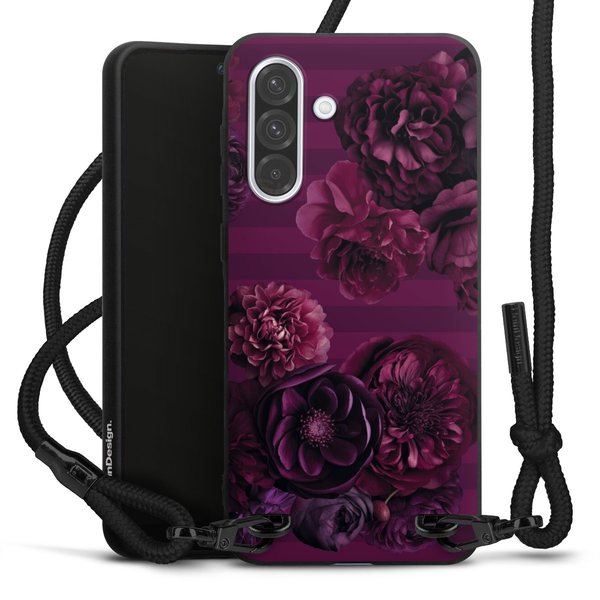 The matt black silicone case is made of flexible TPU (thermoplastic polyurethane) and offers robust protection. The durable, unbreakable material makes the cover flexible and dimensionally stable at the same time. The matte surface makes your design stand out more and is less susceptible to fingerprints and dirt. The stylish trend accessory fits comfortably in the hand and is perfectly complemented by the fabric (polyester) mobile phone strap. The braided fabric strap is approx. 1.70 metres long with a diameter of approx. 0.5 cm. Due to the special knotting technique, the length of the strap can be adjusted by simply pulling it, so that you can adapt it individually to your wishes. The practical case to wear around your neck is available with the fabric strap in black. As a little icing on the cake, we have provided the strap with a chic metal fastener in matt black. The strap is securely fastened to the case with loops made of high-quality genuine leather and press studs. The ends of the fabric strap are covered with metallic end caps and thus protected from fraying.