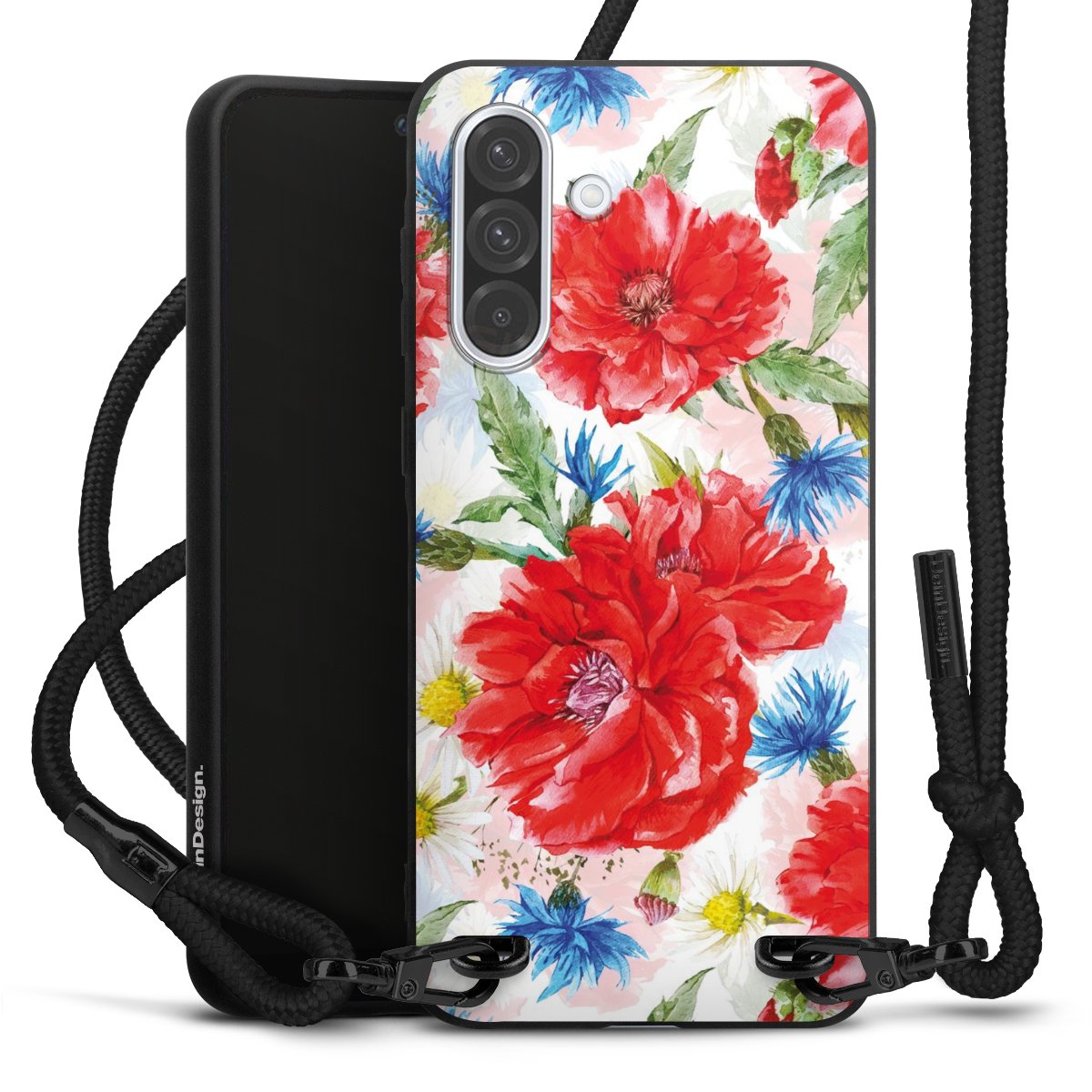 The matt black silicone case is made of flexible TPU (thermoplastic polyurethane) and offers robust protection. The durable, unbreakable material makes the cover flexible and dimensionally stable at the same time. The matte surface makes your design stand out more and is less susceptible to fingerprints and dirt. The stylish trend accessory fits comfortably in the hand and is perfectly complemented by the fabric (polyester) mobile phone strap. The braided fabric strap is approx. 1.70 metres long with a diameter of approx. 0.5 cm. Due to the special knotting technique, the length of the strap can be adjusted by simply pulling it, so that you can adapt it individually to your wishes. The practical case to wear around your neck is available with the fabric strap in black. As a little icing on the cake, we have provided the strap with a chic metal fastener in matt black. The strap is securely fastened to the case with loops made of high-quality genuine leather and press studs. The ends of the fabric strap are covered with metallic end caps and thus protected from fraying.