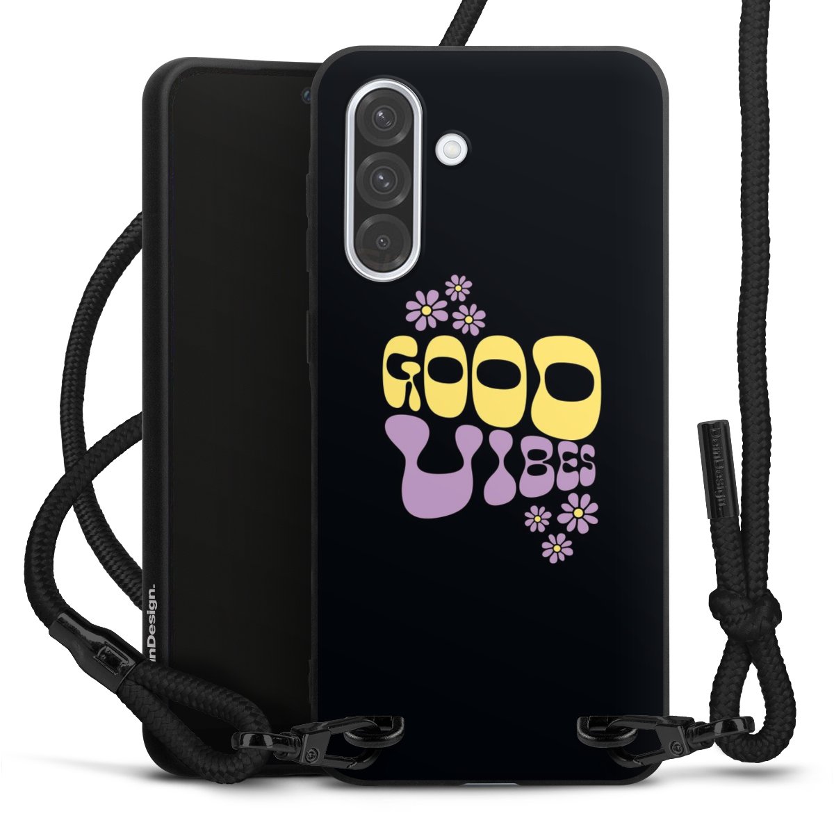 The matt black silicone case is made of flexible TPU (thermoplastic polyurethane) and offers robust protection. The durable, unbreakable material makes the cover flexible and dimensionally stable at the same time. The matte surface makes your design stand out more and is less susceptible to fingerprints and dirt. The stylish trend accessory fits comfortably in the hand and is perfectly complemented by the fabric (polyester) mobile phone strap. The braided fabric strap is approx. 1.70 metres long with a diameter of approx. 0.5 cm. Due to the special knotting technique, the length of the strap can be adjusted by simply pulling it, so that you can adapt it individually to your wishes. The practical case to wear around your neck is available with the fabric strap in black. As a little icing on the cake, we have provided the strap with a chic metal fastener in matt black. The strap is securely fastened to the case with loops made of high-quality genuine leather and press studs. The ends of the fabric strap are covered with metallic end caps and thus protected from fraying.