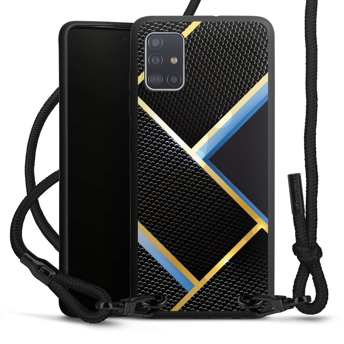 The matt black silicone case is made of flexible TPU (thermoplastic polyurethane) and offers robust protection. The durable, unbreakable material makes the cover flexible and dimensionally stable at the same time. The matte surface makes your design stand out more and is less susceptible to fingerprints and dirt. The stylish trend accessory fits comfortably in the hand and is perfectly complemented by the fabric (polyester) mobile phone strap. The braided fabric strap is approx. 1.70 metres long with a diameter of approx. 0.5 cm. Due to the special knotting technique, the length of the strap can be adjusted by simply pulling it, so that you can adapt it individually to your wishes. The practical case to wear around your neck is available with the fabric strap in black. As a little icing on the cake, we have provided the strap with a chic metal fastener in matt black. The strap is securely fastened to the case with loops made of high-quality genuine leather and press studs. The ends of the fabric strap are covered with metallic end caps and thus protected from fraying.
