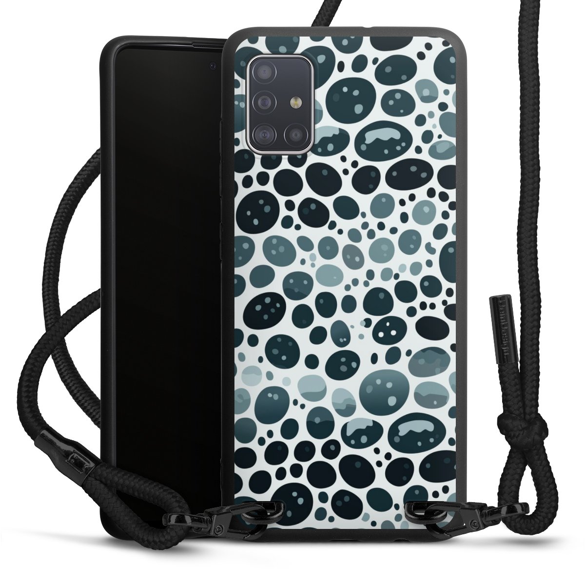 The matt black silicone case is made of flexible TPU (thermoplastic polyurethane) and offers robust protection. The durable, unbreakable material makes the cover flexible and dimensionally stable at the same time. The matte surface makes your design stand out more and is less susceptible to fingerprints and dirt. The stylish trend accessory fits comfortably in the hand and is perfectly complemented by the fabric (polyester) mobile phone strap. The braided fabric strap is approx. 1.70 metres long with a diameter of approx. 0.5 cm. Due to the special knotting technique, the length of the strap can be adjusted by simply pulling it, so that you can adapt it individually to your wishes. The practical case to wear around your neck is available with the fabric strap in black. As a little icing on the cake, we have provided the strap with a chic metal fastener in matt black. The strap is securely fastened to the case with loops made of high-quality genuine leather and press studs. The ends of the fabric strap are covered with metallic end caps and thus protected from fraying.
