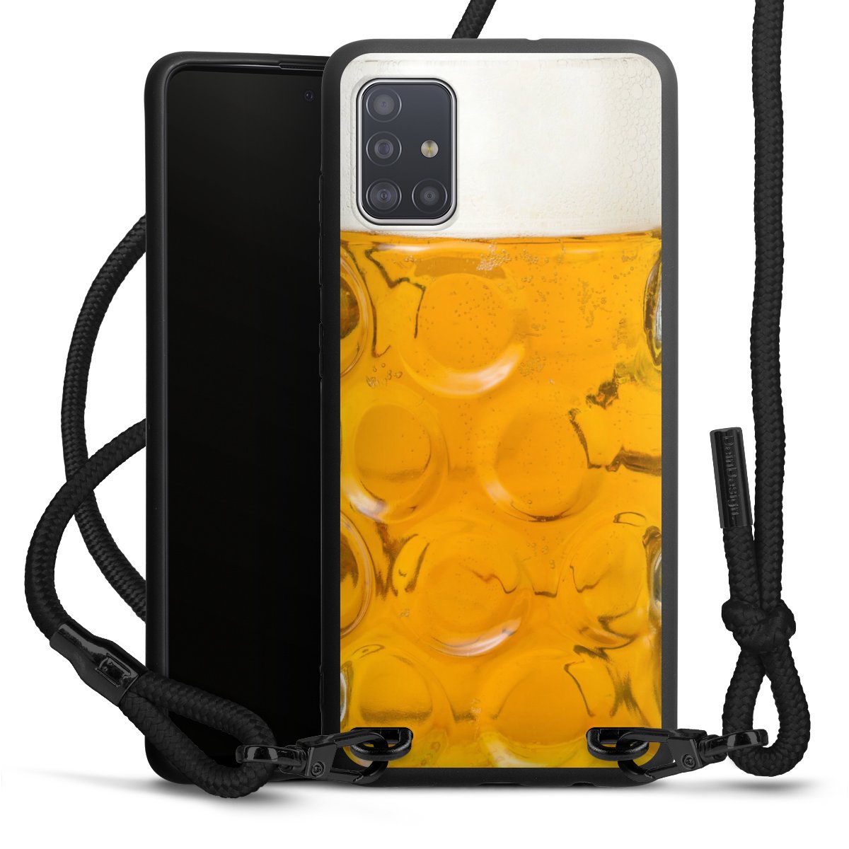 We use the solid direct print process for this phone case, which is why the print area only covers the back and the edge remains unprinted. The case to wear around your neck can be ordered unprinted, fully printed, or partially printed. For your design, either choose one of our exclusive shop motifs or get creative and create your own design, for example with photos and overlays. Design your own personal trend accessory and make an individual statement on the streets!