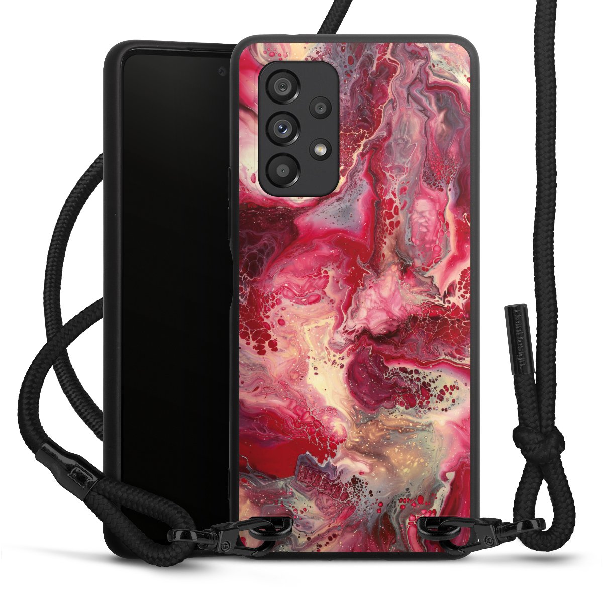We use the solid direct print process for this phone case, which is why the print area only covers the back and the edge remains unprinted. The case to wear around your neck can be ordered unprinted, fully printed, or partially printed. For your design, either choose one of our exclusive shop motifs or get creative and create your own design, for example with photos and overlays. Design your own personal trend accessory and make an individual statement on the streets!