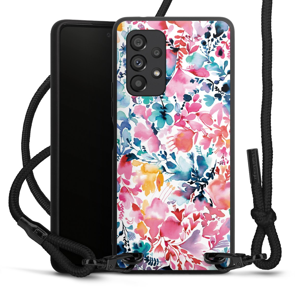 We use the solid direct print process for this phone case, which is why the print area only covers the back and the edge remains unprinted. The case to wear around your neck can be ordered unprinted, fully printed, or partially printed. For your design, either choose one of our exclusive shop motifs or get creative and create your own design, for example with photos and overlays. Design your own personal trend accessory and make an individual statement on the streets!