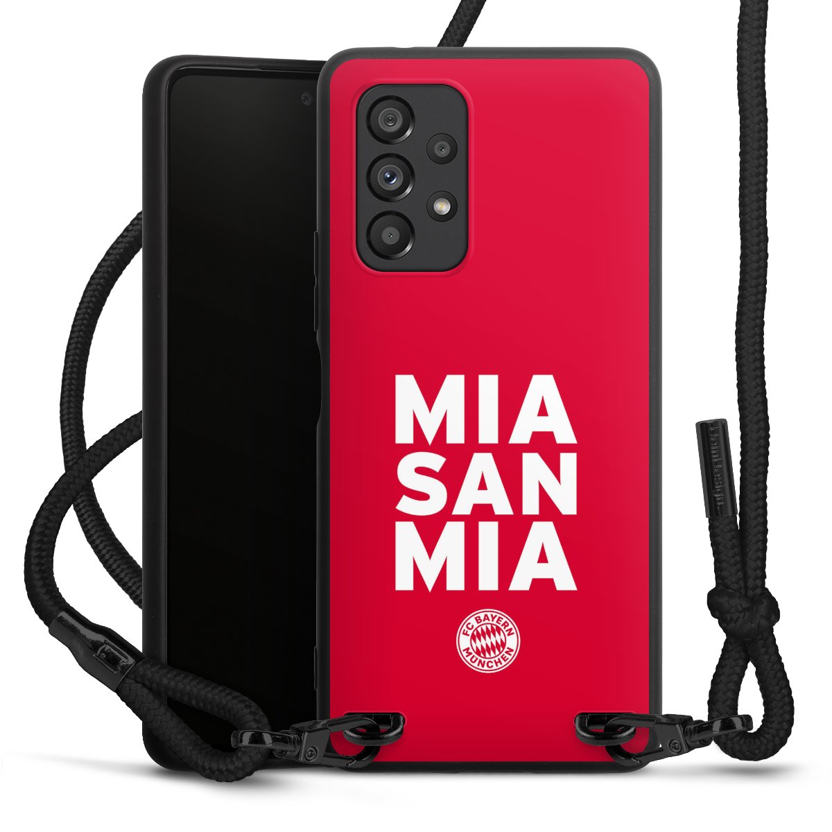 The matt black silicone case is made of flexible TPU (thermoplastic polyurethane) and offers robust protection. The durable, unbreakable material makes the cover flexible and dimensionally stable at the same time. The matte surface makes your design stand out more and is less susceptible to fingerprints and dirt. The stylish trend accessory fits comfortably in the hand and is perfectly complemented by the fabric (polyester) mobile phone strap. The braided fabric strap is approx. 1.70 metres long with a diameter of approx. 0.5 cm. Due to the special knotting technique, the length of the strap can be adjusted by simply pulling it, so that you can adapt it individually to your wishes. The practical case to wear around your neck is available with the fabric strap in black. As a little icing on the cake, we have provided the strap with a chic metal fastener in matt black. The strap is securely fastened to the case with loops made of high-quality genuine leather and press studs. The ends of the fabric strap are covered with metallic end caps and thus protected from fraying.