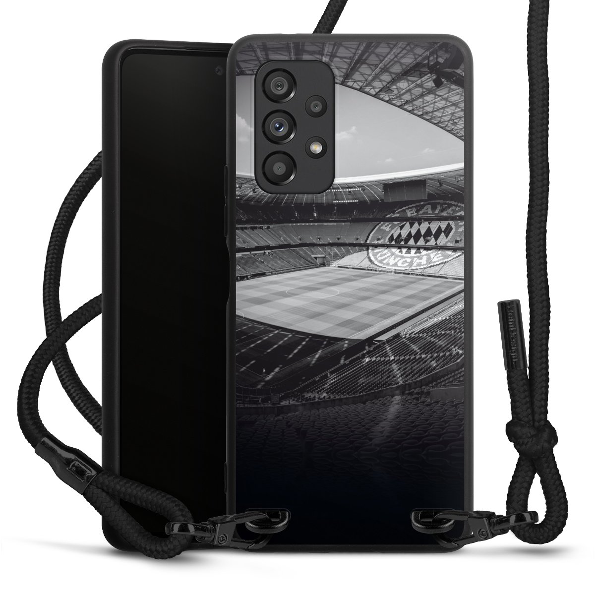 The matt black silicone case is made of flexible TPU (thermoplastic polyurethane) and offers robust protection. The durable, unbreakable material makes the cover flexible and dimensionally stable at the same time. The matte surface makes your design stand out more and is less susceptible to fingerprints and dirt. The stylish trend accessory fits comfortably in the hand and is perfectly complemented by the fabric (polyester) mobile phone strap. The braided fabric strap is approx. 1.70 metres long with a diameter of approx. 0.5 cm. Due to the special knotting technique, the length of the strap can be adjusted by simply pulling it, so that you can adapt it individually to your wishes. The practical case to wear around your neck is available with the fabric strap in black. As a little icing on the cake, we have provided the strap with a chic metal fastener in matt black. The strap is securely fastened to the case with loops made of high-quality genuine leather and press studs. The ends of the fabric strap are covered with metallic end caps and thus protected from fraying.
