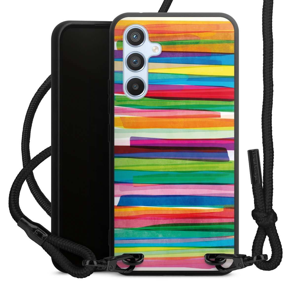 We use the solid direct print process for this phone case, which is why the print area only covers the back and the edge remains unprinted. The case to wear around your neck can be ordered unprinted, fully printed, or partially printed. For your design, either choose one of our exclusive shop motifs or get creative and create your own design, for example with photos and overlays. Design your own personal trend accessory and make an individual statement on the streets!