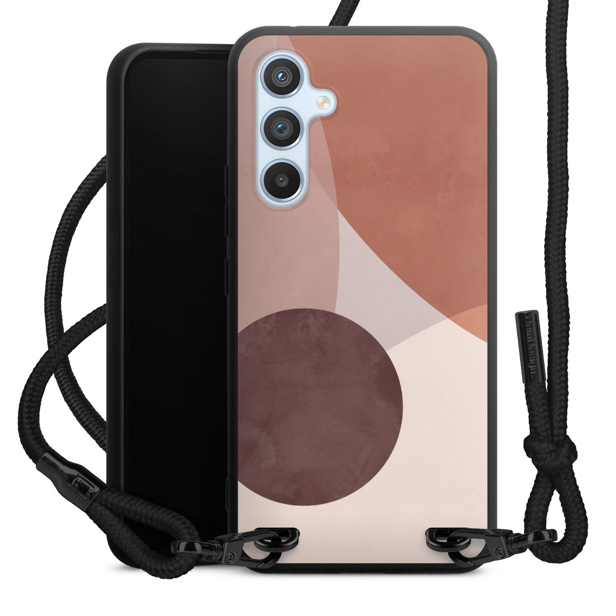 The matt black silicone case is made of flexible TPU (thermoplastic polyurethane) and offers robust protection. The durable, unbreakable material makes the cover flexible and dimensionally stable at the same time. The matte surface makes your design stand out more and is less susceptible to fingerprints and dirt. The stylish trend accessory fits comfortably in the hand and is perfectly complemented by the fabric (polyester) mobile phone strap. The braided fabric strap is approx. 1.70 metres long with a diameter of approx. 0.5 cm. Due to the special knotting technique, the length of the strap can be adjusted by simply pulling it, so that you can adapt it individually to your wishes. The practical case to wear around your neck is available with the fabric strap in black. As a little icing on the cake, we have provided the strap with a chic metal fastener in matt black. The strap is securely fastened to the case with loops made of high-quality genuine leather and press studs. The ends of the fabric strap are covered with metallic end caps and thus protected from fraying.