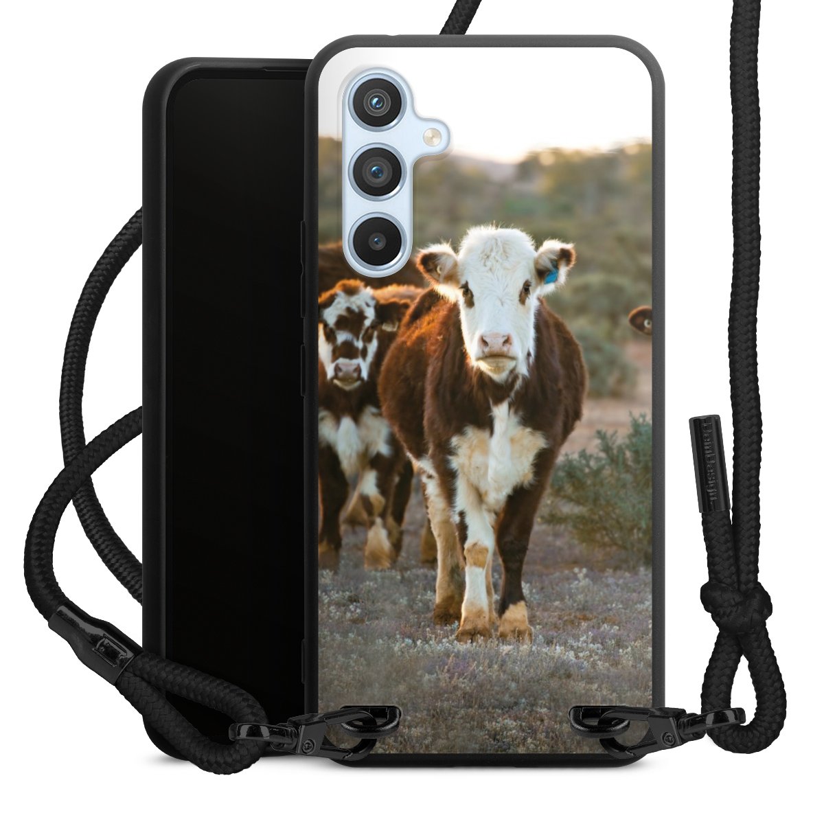 The matt black silicone case is made of flexible TPU (thermoplastic polyurethane) and offers robust protection. The durable, unbreakable material makes the cover flexible and dimensionally stable at the same time. The matte surface makes your design stand out more and is less susceptible to fingerprints and dirt. The stylish trend accessory fits comfortably in the hand and is perfectly complemented by the fabric (polyester) mobile phone strap. The braided fabric strap is approx. 1.70 metres long with a diameter of approx. 0.5 cm. Due to the special knotting technique, the length of the strap can be adjusted by simply pulling it, so that you can adapt it individually to your wishes. The practical case to wear around your neck is available with the fabric strap in black. As a little icing on the cake, we have provided the strap with a chic metal fastener in matt black. The strap is securely fastened to the case with loops made of high-quality genuine leather and press studs. The ends of the fabric strap are covered with metallic end caps and thus protected from fraying.