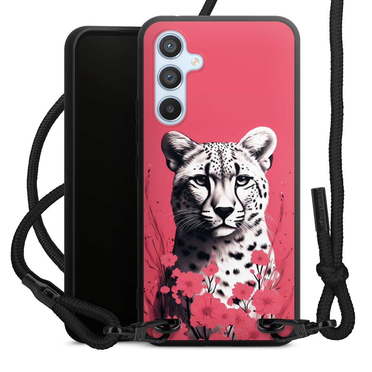 The matt black silicone case is made of flexible TPU (thermoplastic polyurethane) and offers robust protection. The durable, unbreakable material makes the cover flexible and dimensionally stable at the same time. The matte surface makes your design stand out more and is less susceptible to fingerprints and dirt. The stylish trend accessory fits comfortably in the hand and is perfectly complemented by the fabric (polyester) mobile phone strap. The braided fabric strap is approx. 1.70 metres long with a diameter of approx. 0.5 cm. Due to the special knotting technique, the length of the strap can be adjusted by simply pulling it, so that you can adapt it individually to your wishes. The practical case to wear around your neck is available with the fabric strap in black. As a little icing on the cake, we have provided the strap with a chic metal fastener in matt black. The strap is securely fastened to the case with loops made of high-quality genuine leather and press studs. The ends of the fabric strap are covered with metallic end caps and thus protected from fraying.