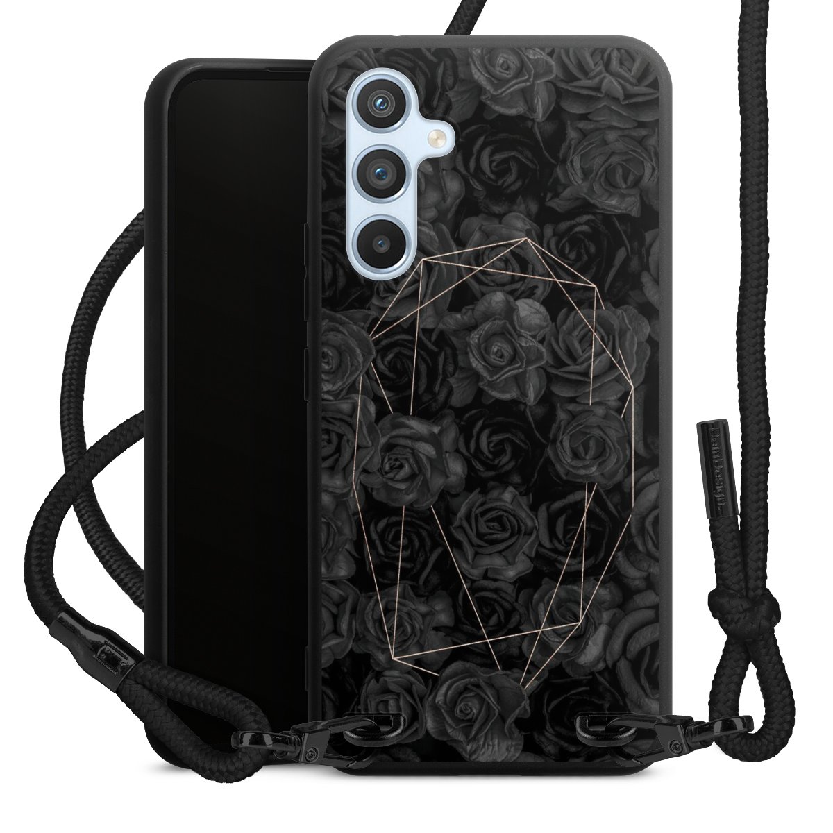 The matt black silicone case is made of flexible TPU (thermoplastic polyurethane) and offers robust protection. The durable, unbreakable material makes the cover flexible and dimensionally stable at the same time. The matte surface makes your design stand out more and is less susceptible to fingerprints and dirt. The stylish trend accessory fits comfortably in the hand and is perfectly complemented by the fabric (polyester) mobile phone strap. The braided fabric strap is approx. 1.70 metres long with a diameter of approx. 0.5 cm. Due to the special knotting technique, the length of the strap can be adjusted by simply pulling it, so that you can adapt it individually to your wishes. The practical case to wear around your neck is available with the fabric strap in black. As a little icing on the cake, we have provided the strap with a chic metal fastener in matt black. The strap is securely fastened to the case with loops made of high-quality genuine leather and press studs. The ends of the fabric strap are covered with metallic end caps and thus protected from fraying.