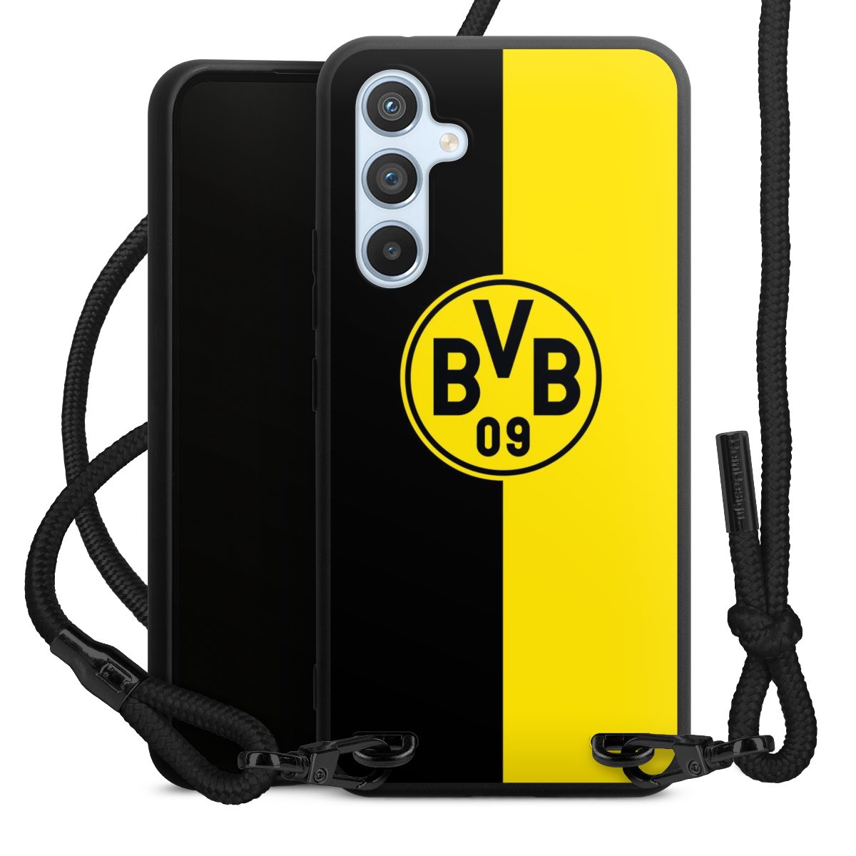 The matt black silicone case is made of flexible TPU (thermoplastic polyurethane) and offers robust protection. The durable, unbreakable material makes the cover flexible and dimensionally stable at the same time. The matte surface makes your design stand out more and is less susceptible to fingerprints and dirt. The stylish trend accessory fits comfortably in the hand and is perfectly complemented by the fabric (polyester) mobile phone strap. The braided fabric strap is approx. 1.70 metres long with a diameter of approx. 0.5 cm. Due to the special knotting technique, the length of the strap can be adjusted by simply pulling it, so that you can adapt it individually to your wishes. The practical case to wear around your neck is available with the fabric strap in black. As a little icing on the cake, we have provided the strap with a chic metal fastener in matt black. The strap is securely fastened to the case with loops made of high-quality genuine leather and press studs. The ends of the fabric strap are covered with metallic end caps and thus protected from fraying.